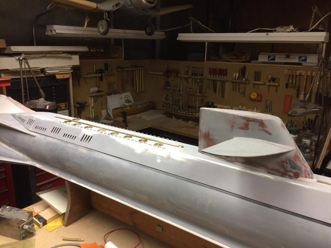 Speaking a detail, a VERY new local modeler (to us) has been working up his own SSRN SEAVIEW. It is actually made from Ray Mason's "shortened" hull molds (to fit in his long gone Mitsubishi van for those of you who remember), he added the missing 16" of midsection.