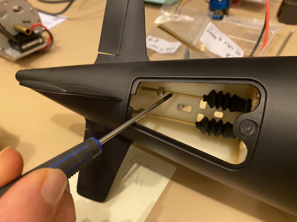 The longer answer is: I have found for both the Engel Type 212a and Akula II that it's best to bend the brass pushrod a little bit at a time until you get a reasonably free servo-to-stern plane/rudder movement. If I recall, on the Akula you'll end up with about 10-15 degree bend? (I'd want to verify that at our next SubRun this Sunday)