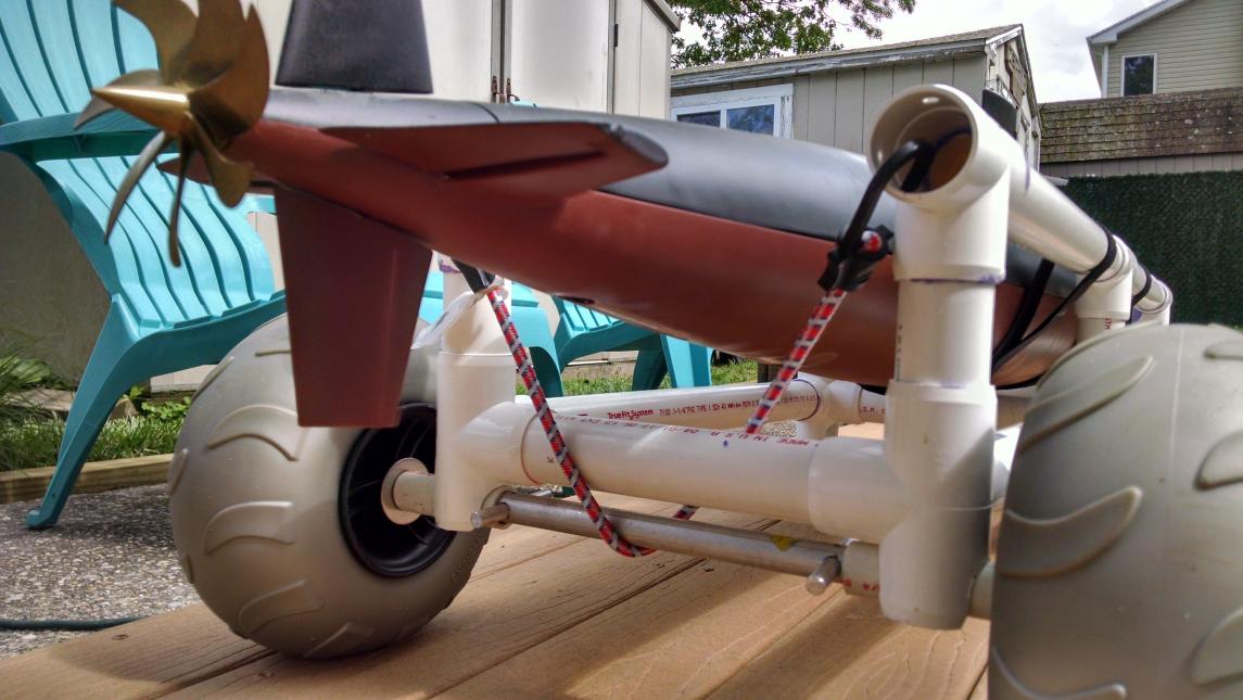 3-Install the bungee w/wheel assembly preferably at the bow to avoid control surface/screw issues (remember the over-sized sand tires make it buoyant)