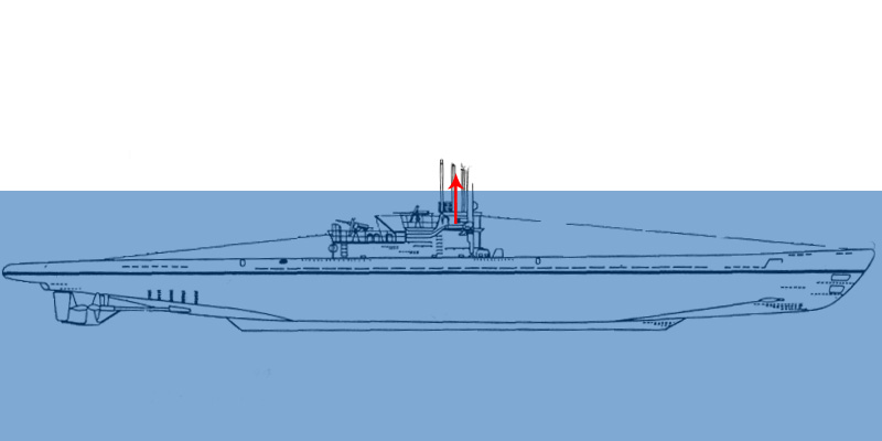 The periscope housing will be used as an additional way to fasten the sail to the deck, so it is marked just past were it exits the underside of the deck into the hull.