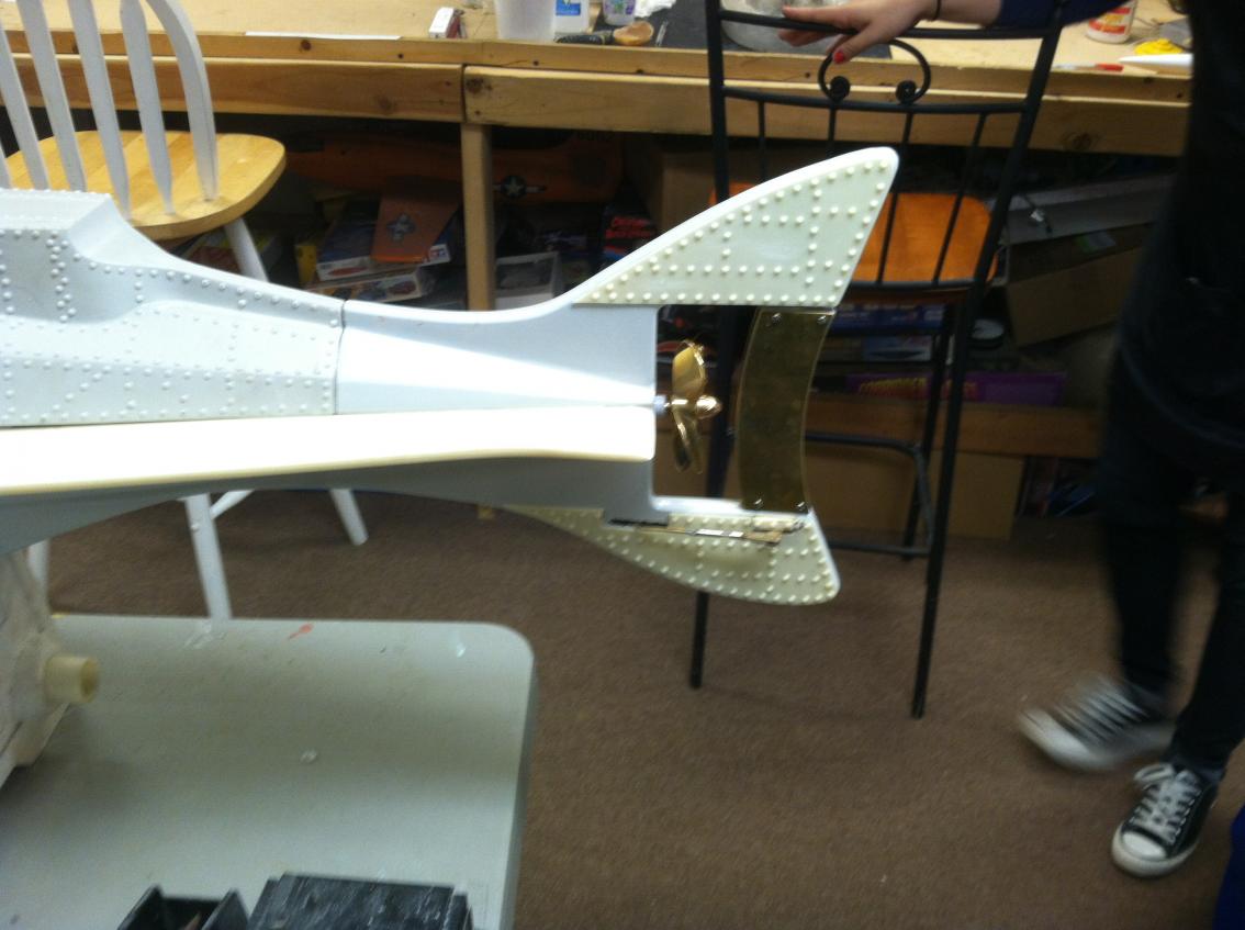 So she could hit the water tomorrow but now the real fun begins. Engle left so many rivets a detail off this boat it blows my mind. No limber holes, no deck vents with grills, no parts or rivets at all on the bottom side of the boat. I have my work cut out for me. They did provide some nice rivet details for the tail. And a bunch of rivets in a bag but they are hardly enough. I have a plan...more on Monday.