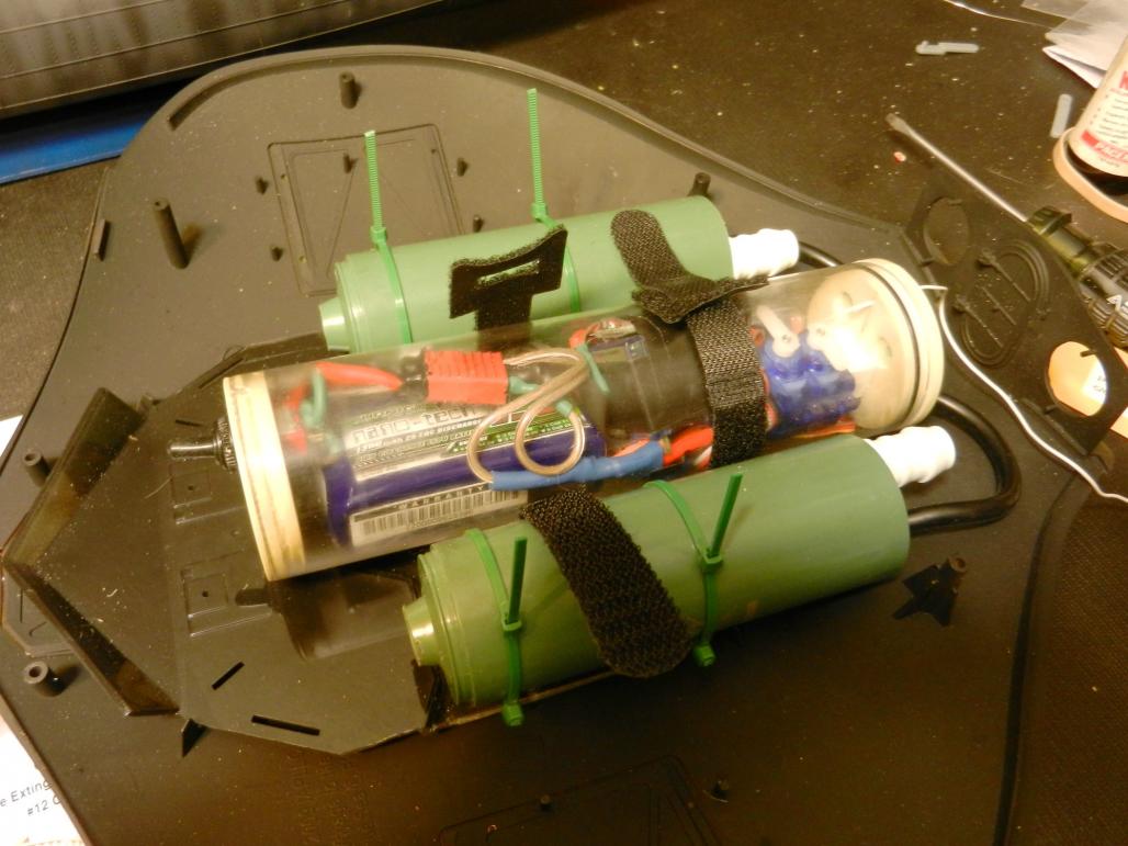 A little more work on FS1. The first battery was 2 cell at 2100 Mah. Have switched to a 7" tube to have room for a waterproof switch and 3 cell batt, 1300 mah. I need to find a way to attach to the camera battery. It's much smaller but 2 cell and 2300 Mah.