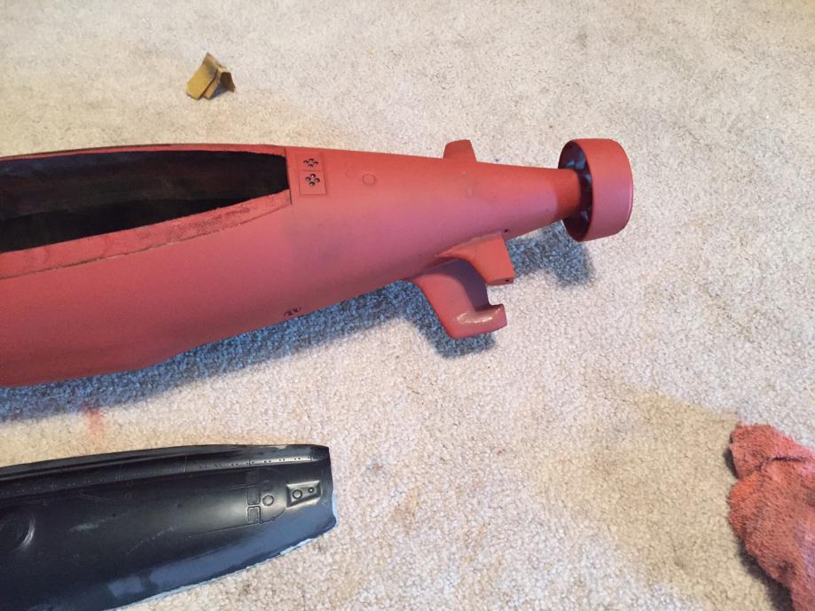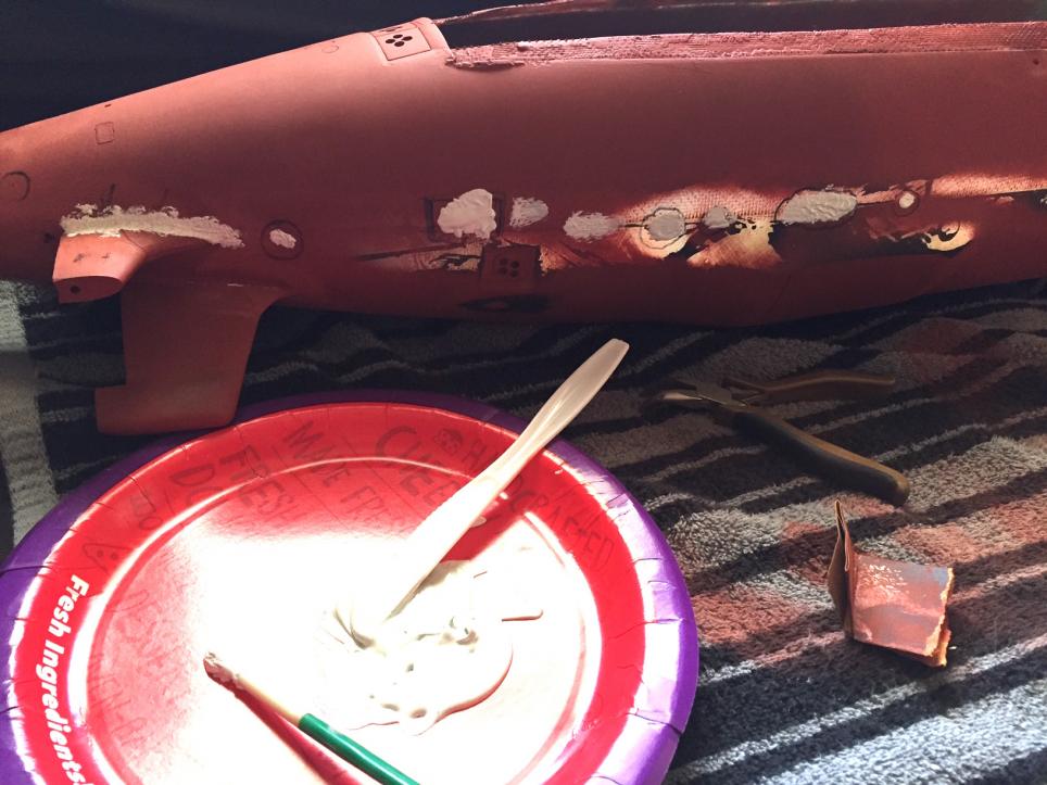 I'm running into a real problem. Yesterday I used Nitro-Stan to fill the small crevices along the seam. It dried, I sanded, I primed, and all looked good. Today, I've been chasing after some of the larger holes with Bondo. After I've filled and sanded, I throw on some primer. I left the hull in the sun to dry the paint. it's about 90+ degrees today. The heat pushed the Notro-stan from yesterday up through and out of the seam and left raised dashes all over the hull. Now Ive had to re-sand them, dig them out a bit, and refill them with bondo. Frustrating.