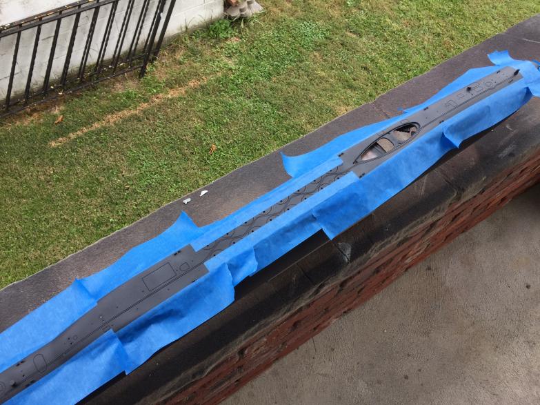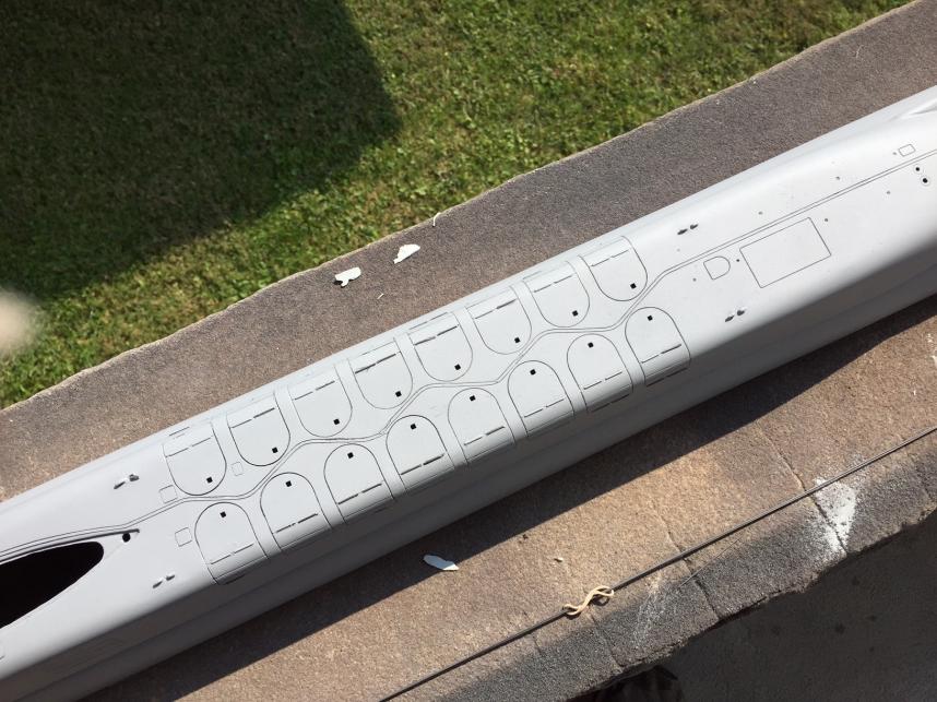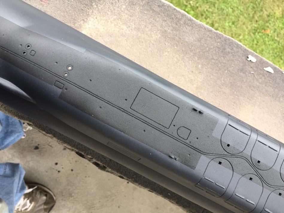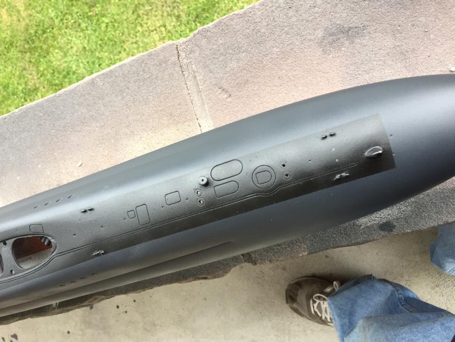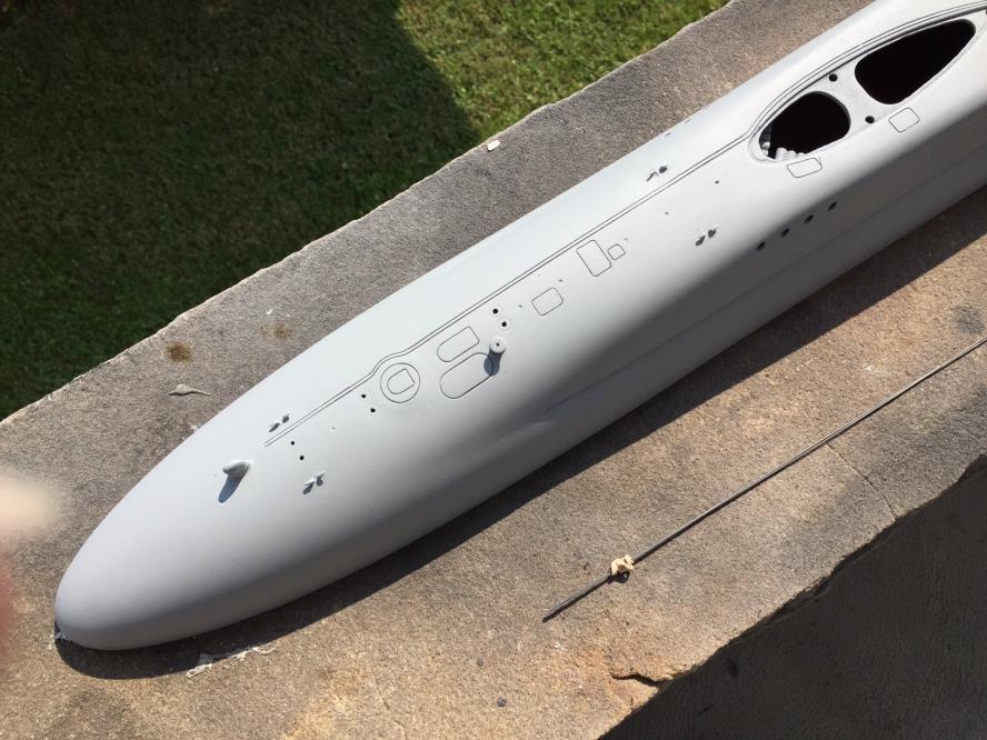 I sourced some good personal photo collections that showed certain details of the Tecumseh the would need to be added (most notably, a towed array). And there was a debate between he and I..... he swears there were no "hinges" on the missile doors. But I found more than a few photos that showed some sort of very subtle hinge-like arrangement protruding from the deck along each door. Using very thin piano wire, I added those 'hinges' to the deck. I also added the counter-measure tubes, angled the correct way. Scribed some of the Tecumseh's unique deck lines, and if memory serves I also had to change the location of the fairwater planes vertically along the sail.