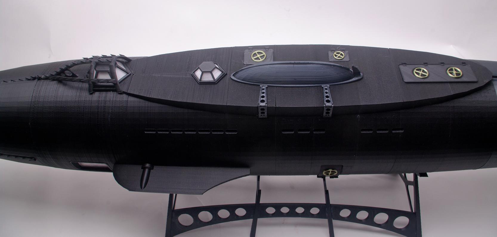 Howdy all; I have been a Verne/Nautilus fan since childhood, and have been creating 3d render files of the Nautilus since 2003. Recently I got into 3d printing, and it wasn't long before I started to think about whether or not I could print my Nautilus design, so I set to work. Today I printed the last hull section and assembled all the pieces. It would seem that this is a great way to build models. Just wanted to share. I settled on 1/42 scale because my build platform is only 8 x 8, so that was as big as I could make it. I was a little disappointed to find that 1/42 is a bit too small to allow good prints of the various interior fixtures and furnishings, so I had to abandon the plan of building a half-model that showcase the interior, but the exterior model has worked out OK. Several people have asked me if I am planning to make it an RC model but that is a bit beyond me...although perhaps it could be provided in kit form for thos who might like to try?