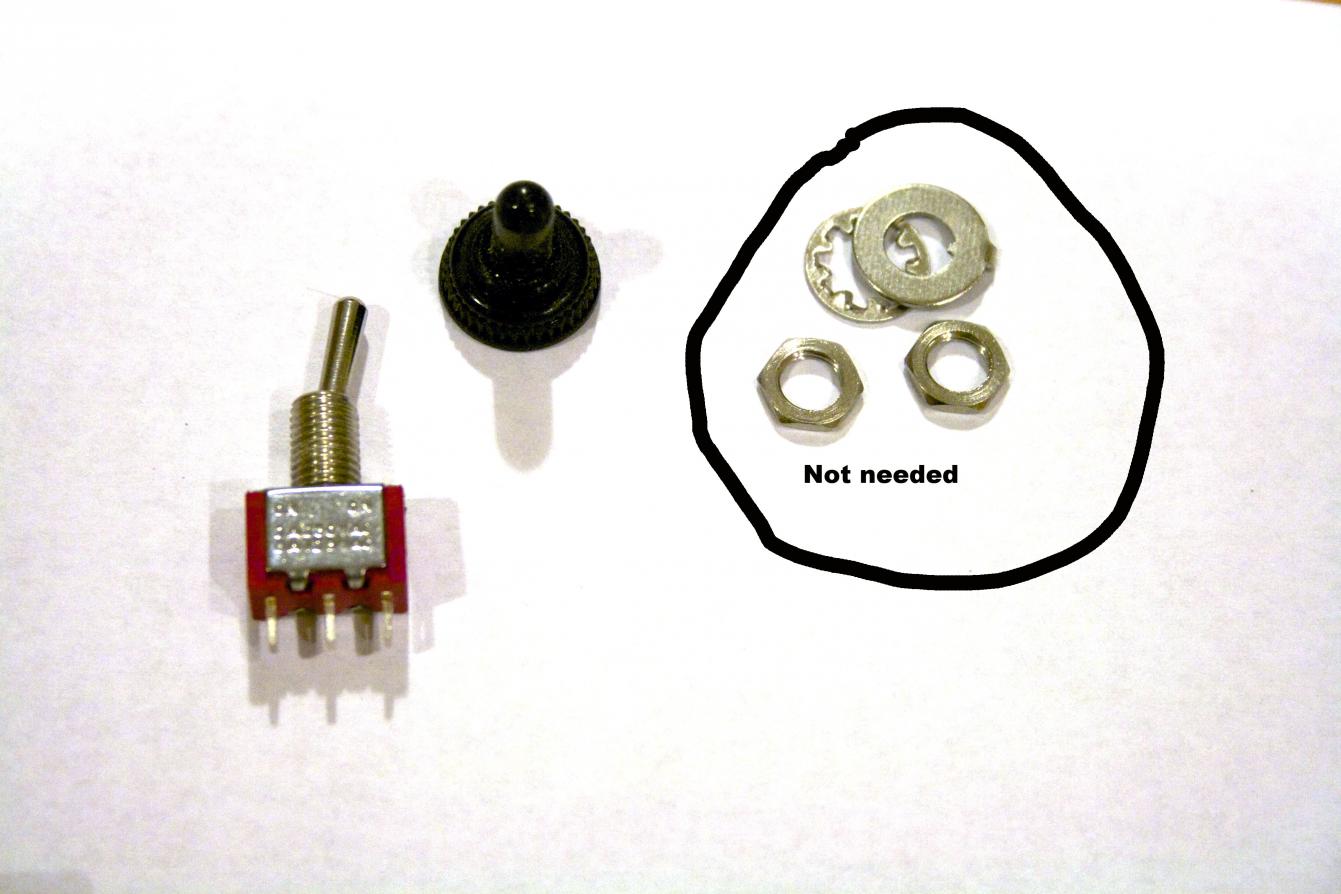 Switch (optional) with waterproof boot. The only two parts I am going to use are the switch itself and the boot - this will get sealed up with RTV silicon when it is finally installed.