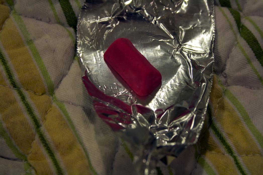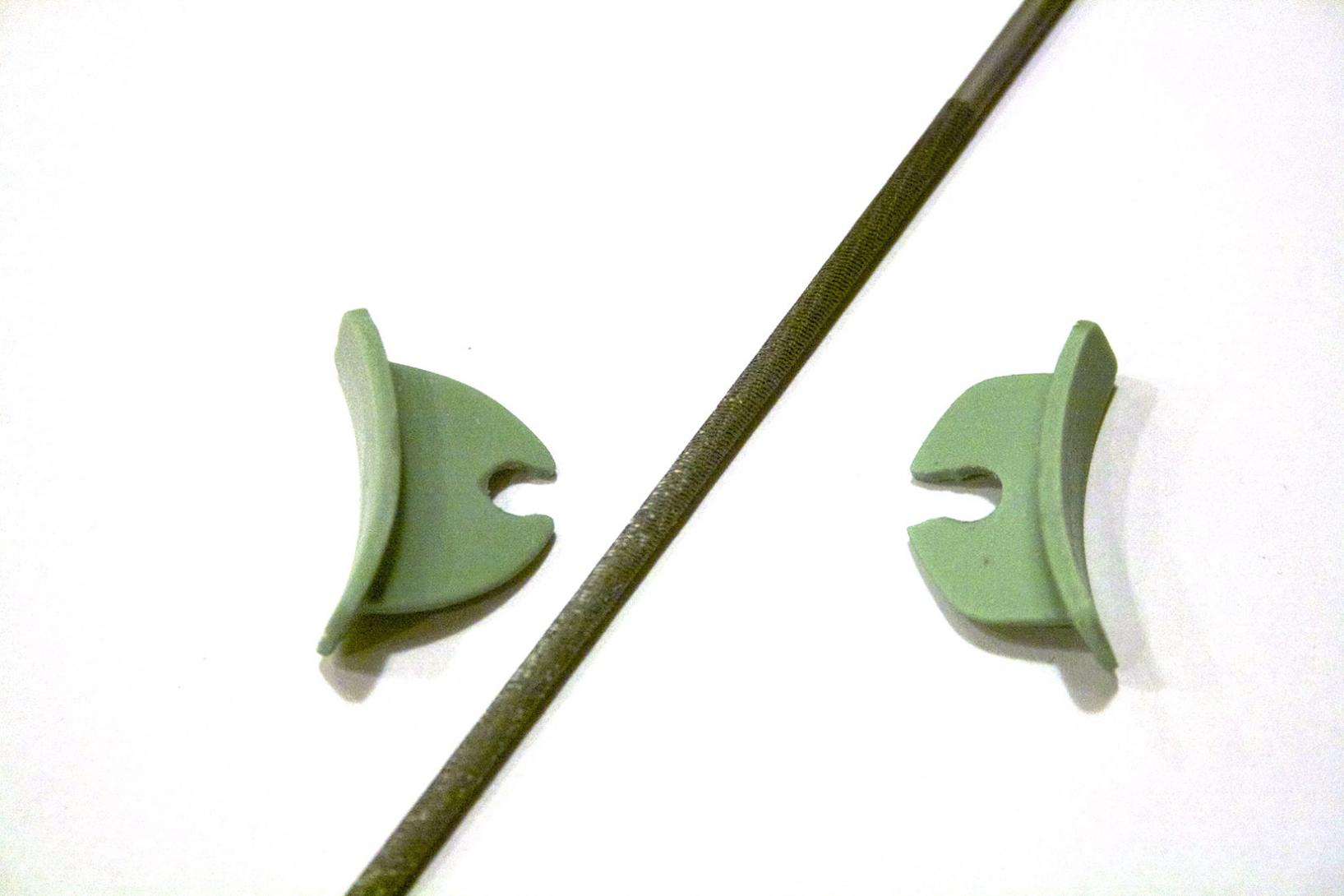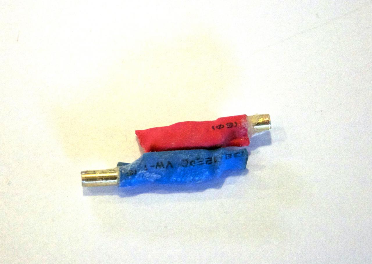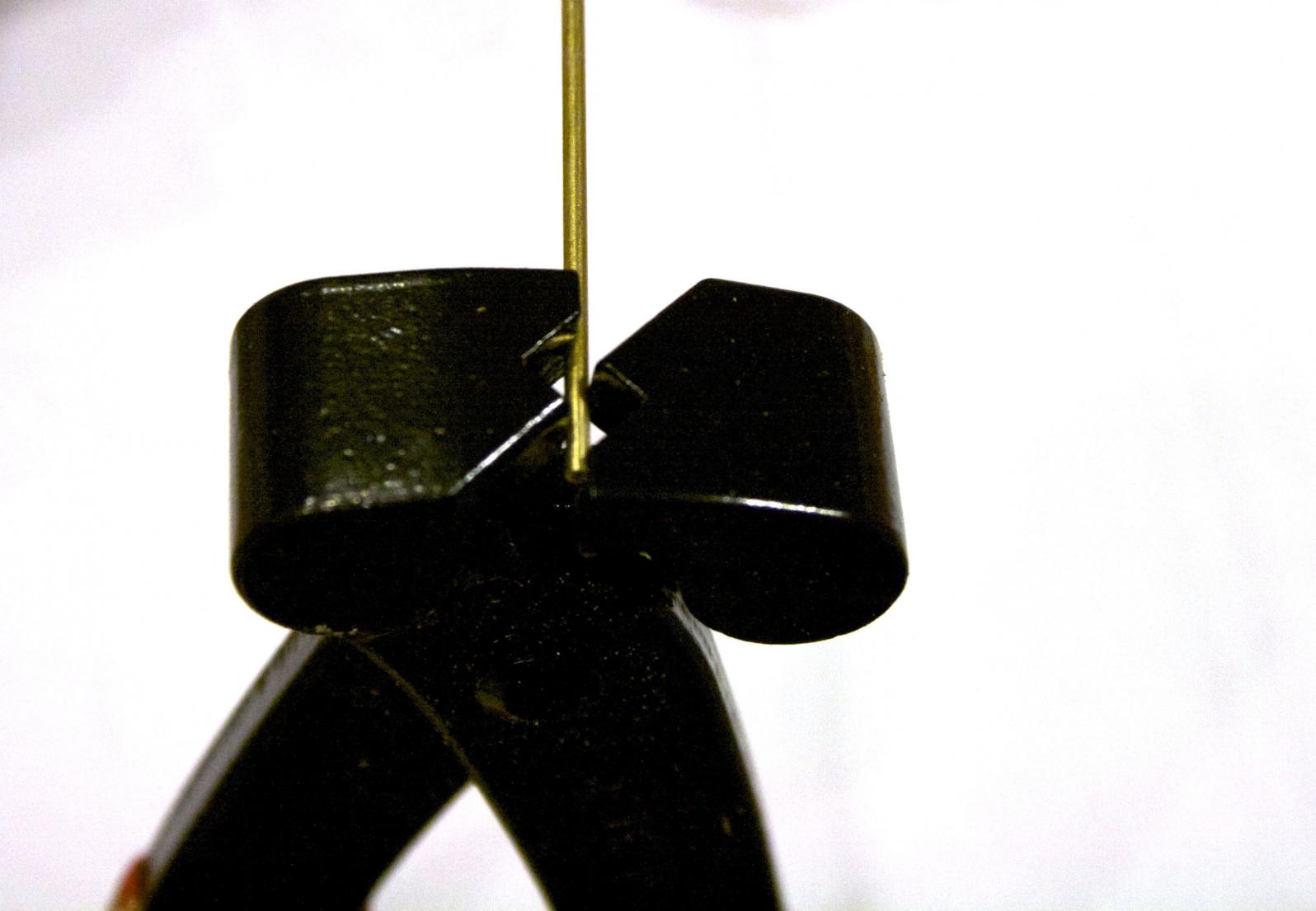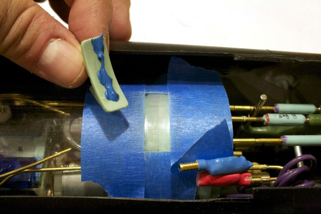 A wire strain relief. I did not have mine, so I made one with Sculpy clay. In this case I made it a triangular shaped rectangle (looks like a long tent).