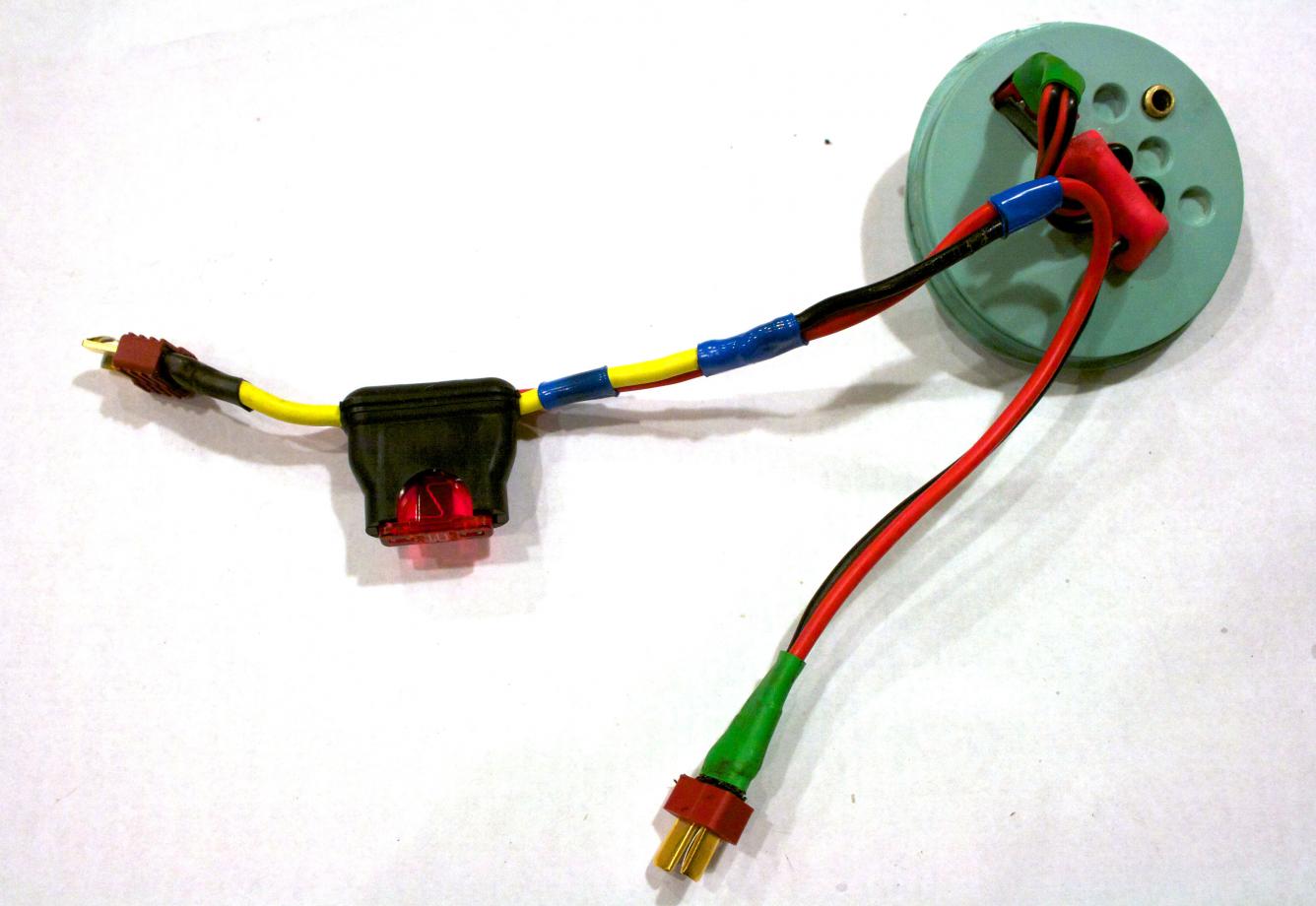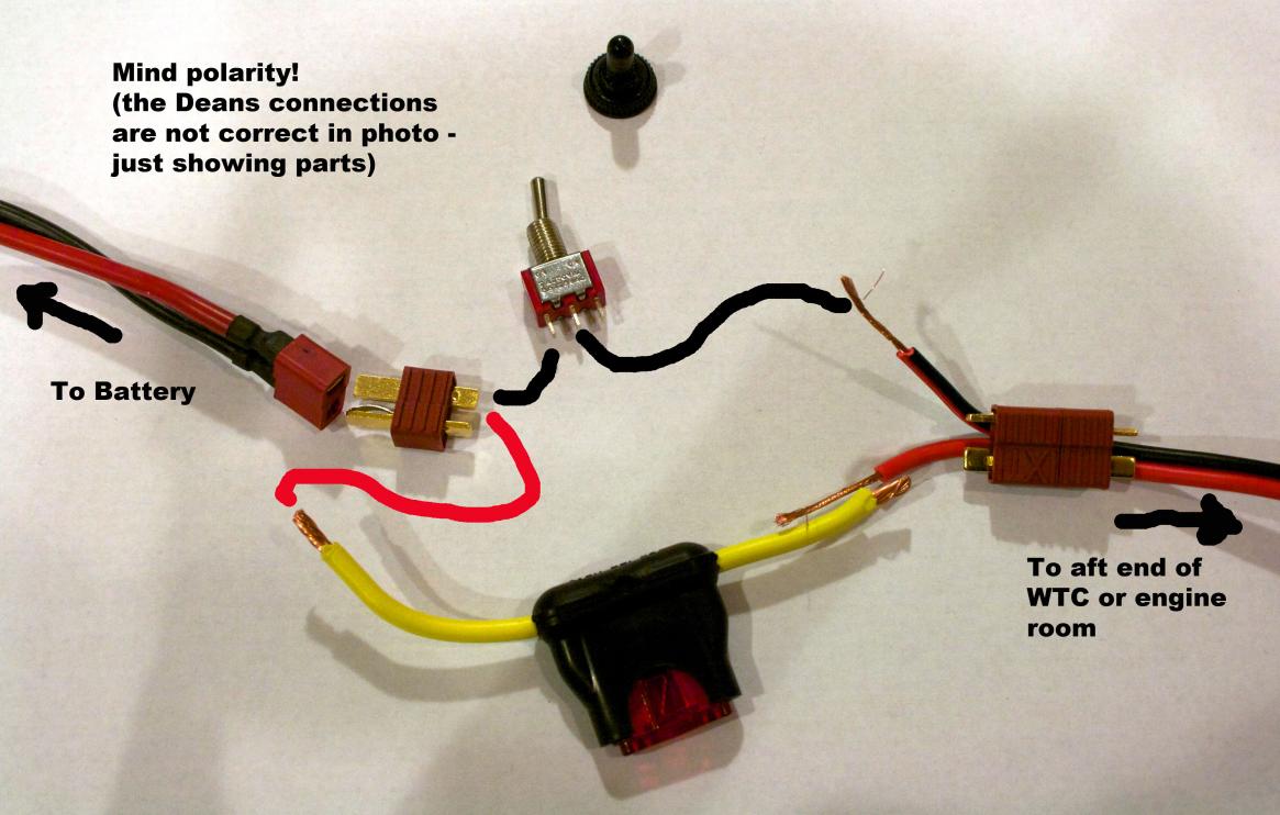 Here is how I strung the main power wire through the WTC. I may re-do this and use a different wire because I may want to run a servo or a secondary mini SNORT from the battery compartment and there is not much room once the wire supplied is installed.