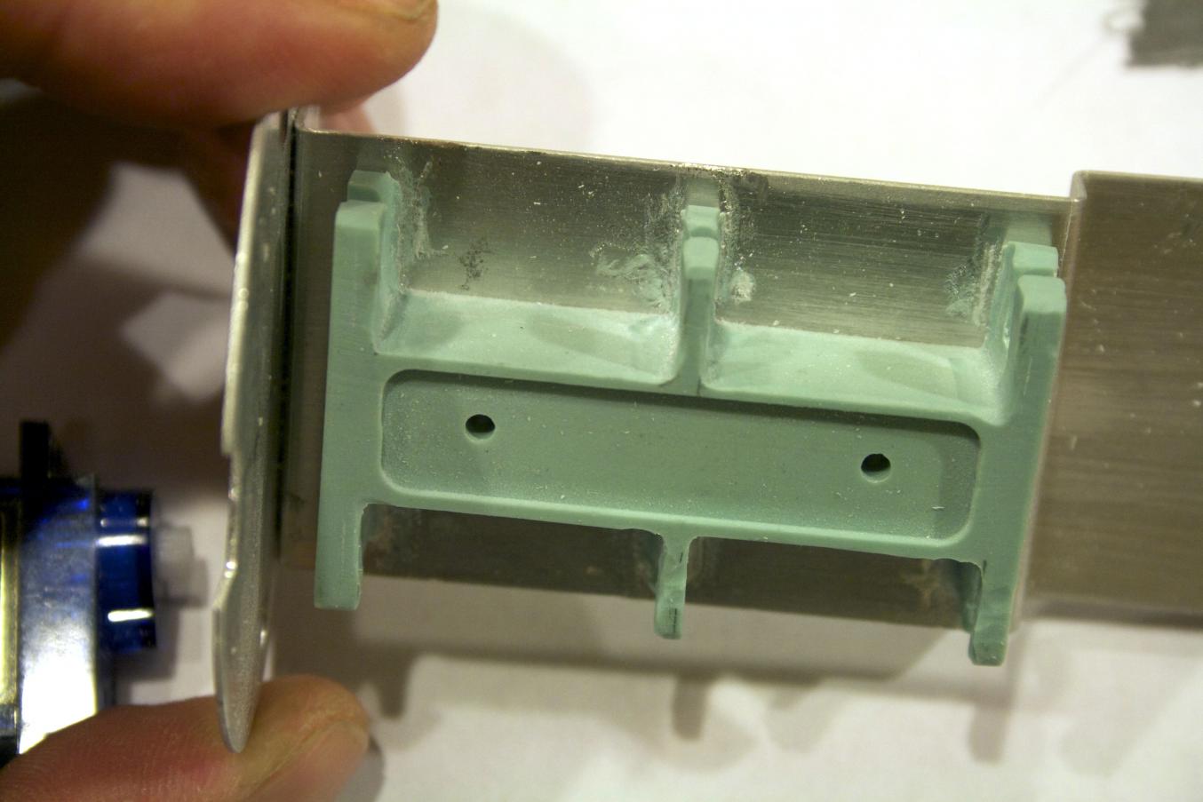 Yep I think we have a winner. Peeling the servos out of the RTV was not too tough to do. It looked like most of the support will come from the resin center piece and not the areas below the servos themselves.