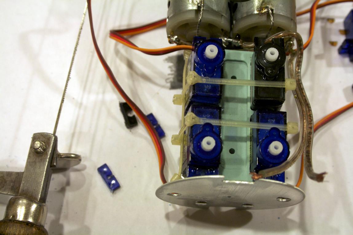 If I move the servos down enough to allow the arm to swing, there would be NO room for the SNORT pump. So next choice.....
