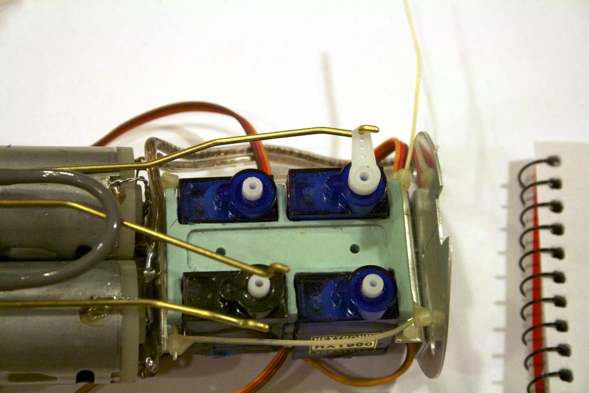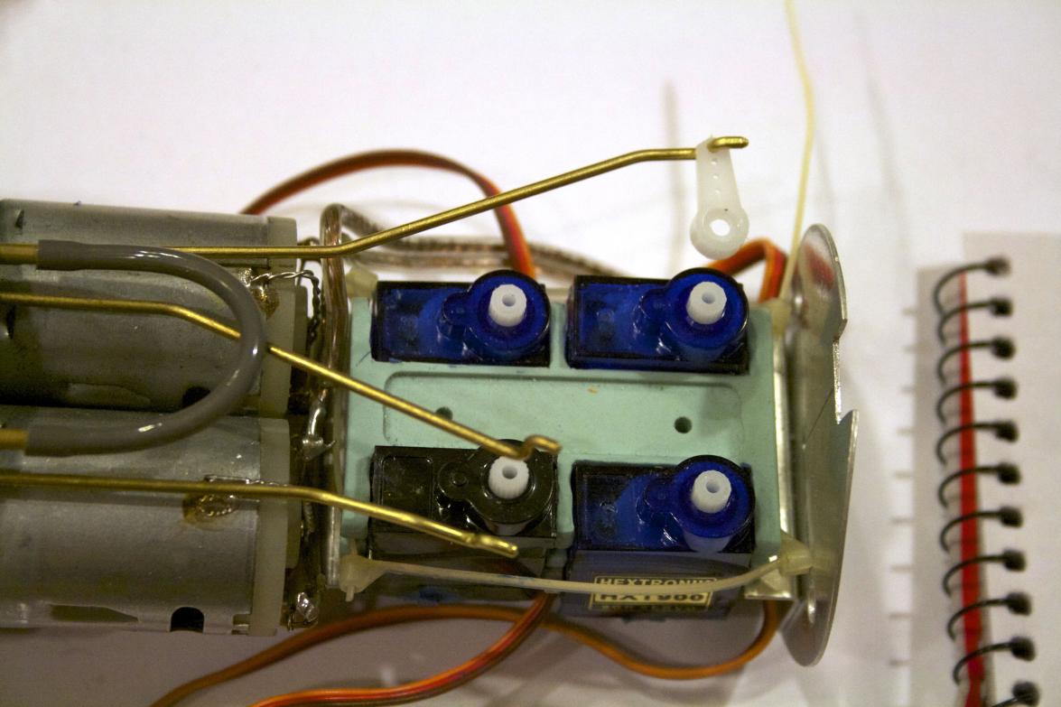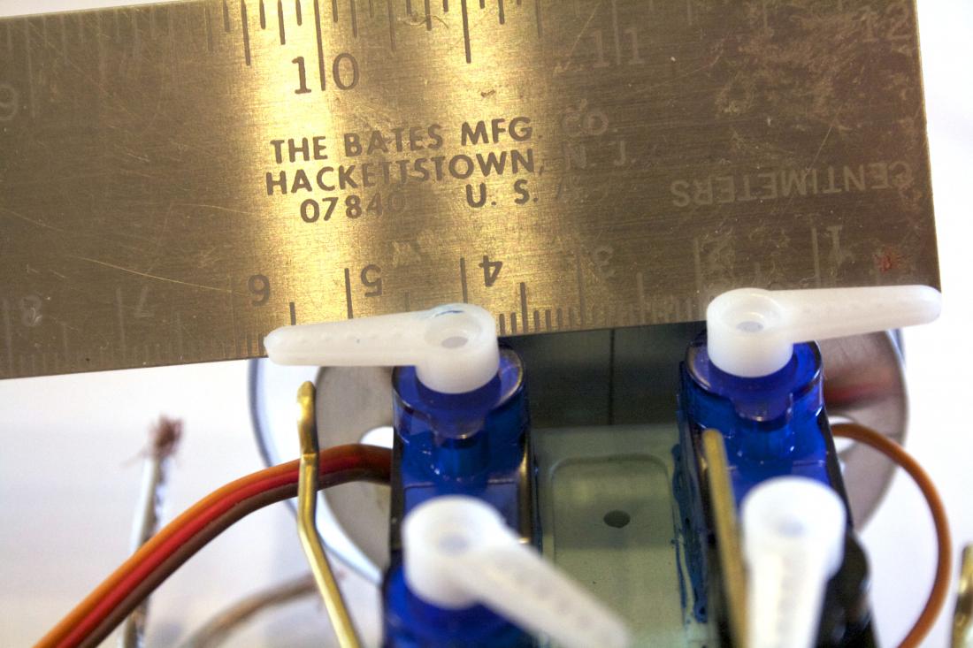 Why not lower the server AND cut the arm back? A combination of cutting out the bottom of the tray to lower the servos and trim the servo arm back. But how far would I need to trim....I needed to find that out.