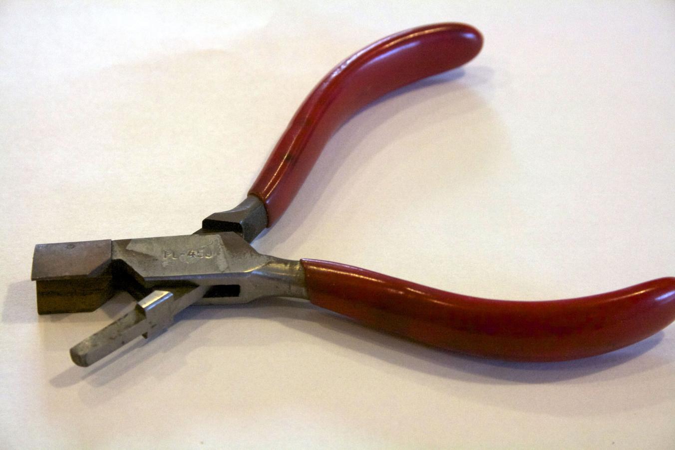 A tool I used for bending rings for sizing was called a Bow Closing Plier - I used a larger plier all the time, but I had this smaller one with a brass jaw that I never used. However it seemed perfect for this application.