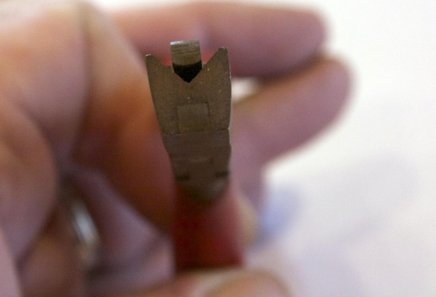 Using a round file I made the hole large enough to accept the tube and slowly opened above to create the bump.