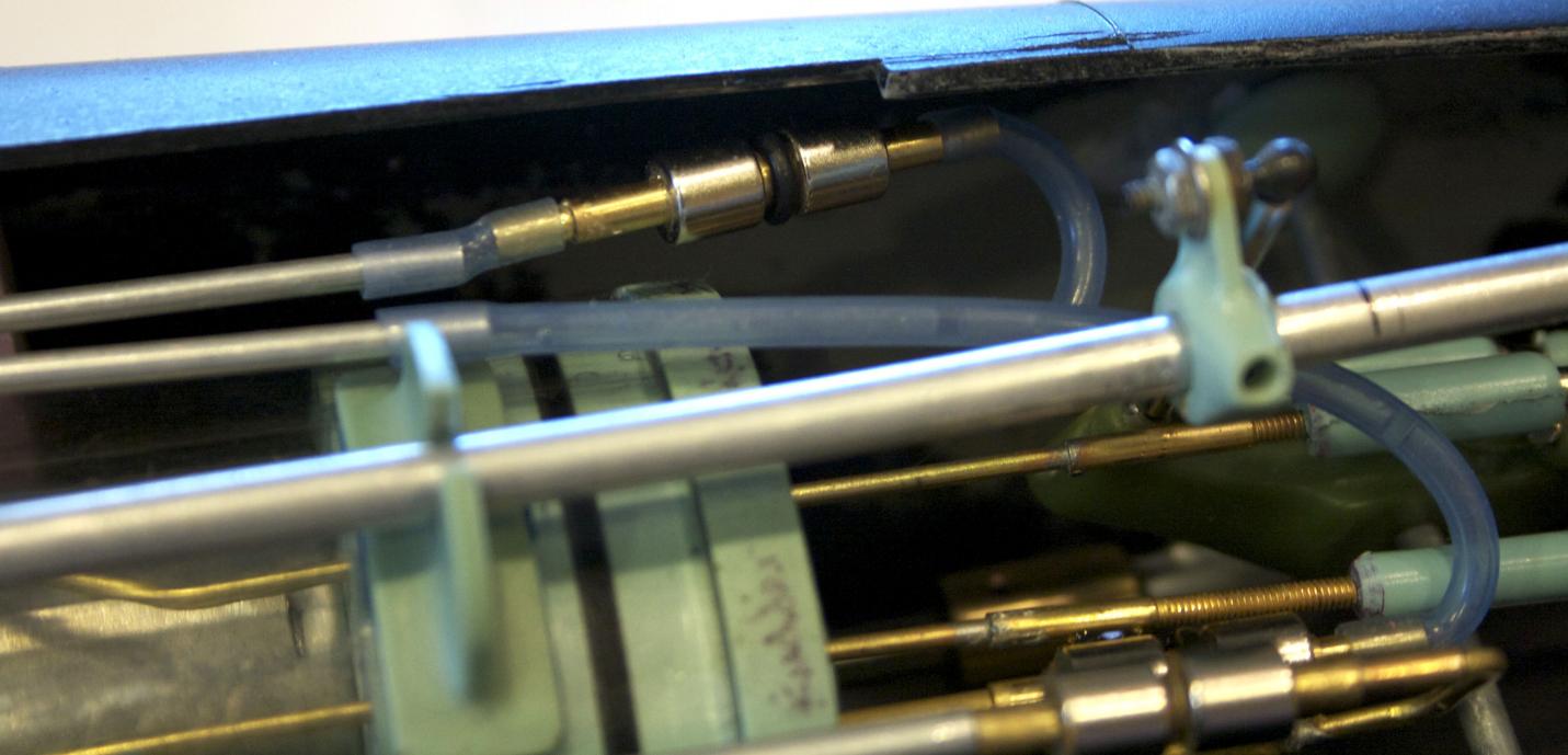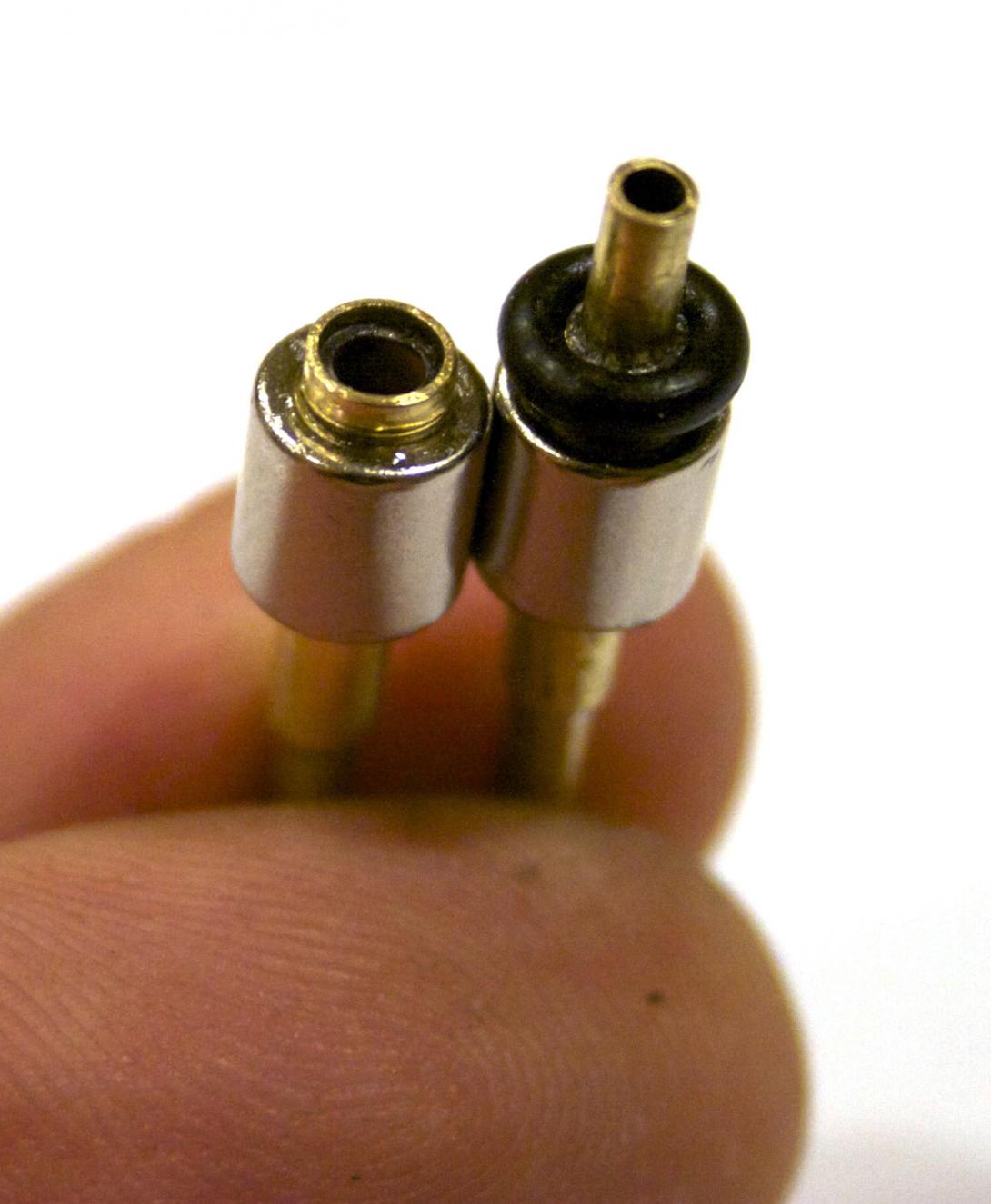 The left one shows a regular connection. There is a length in the center that if the pushrod pulls farther than the plane will allow, it will stay connected. On the right is one made with an o-ring and it works with the snort system.