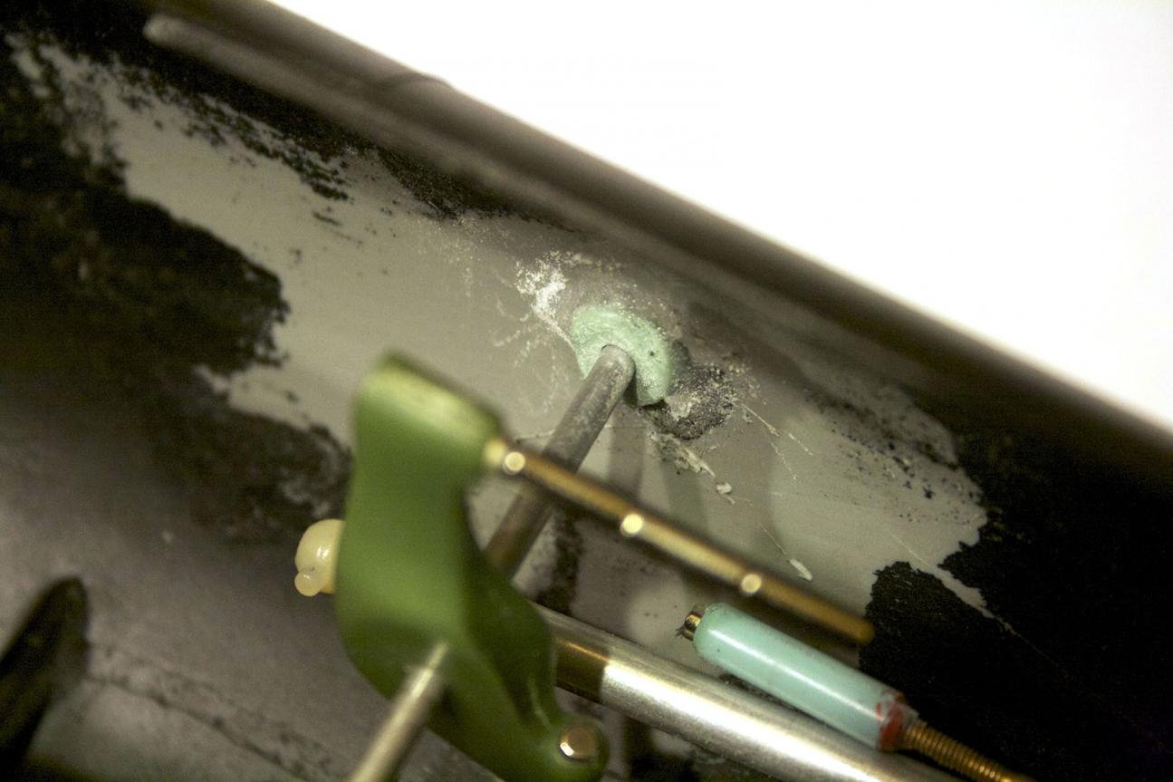 I had choices, I could grind the center divider down, this would move the servos closer to centerline and bring the servo arms in. This sounds good, but I have seen the receiver stored there in between the servos so if I eliminate that space were does the receiver go?? I am learning that space is a premium. So next choice....