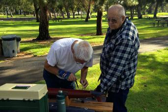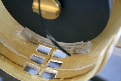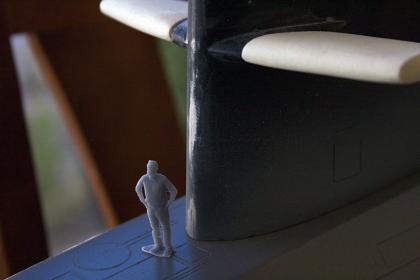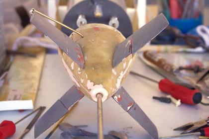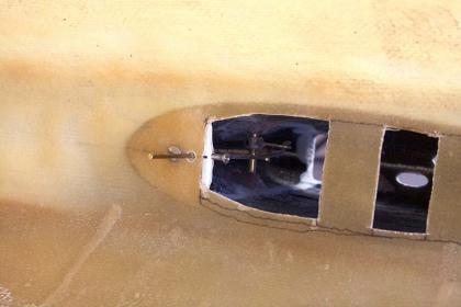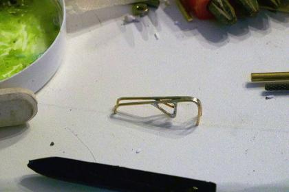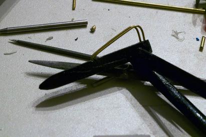 I hope this will make sense, but I used a 1/16" rod attached to the plane horn (brass plate soldered to a wheel collet and the rod has a z bend on the end). Then the brass rod goes through a hole in the resin with another 1/16" hole intersecting the rod hole. I installed in a 2/56 screw into this intersecting hole. The idea is, I can tighten the screw onto the rod to lock the piece in place. If I ever need to make an adjustment, it is a simple loosening of the screw and move the planes then retighten.