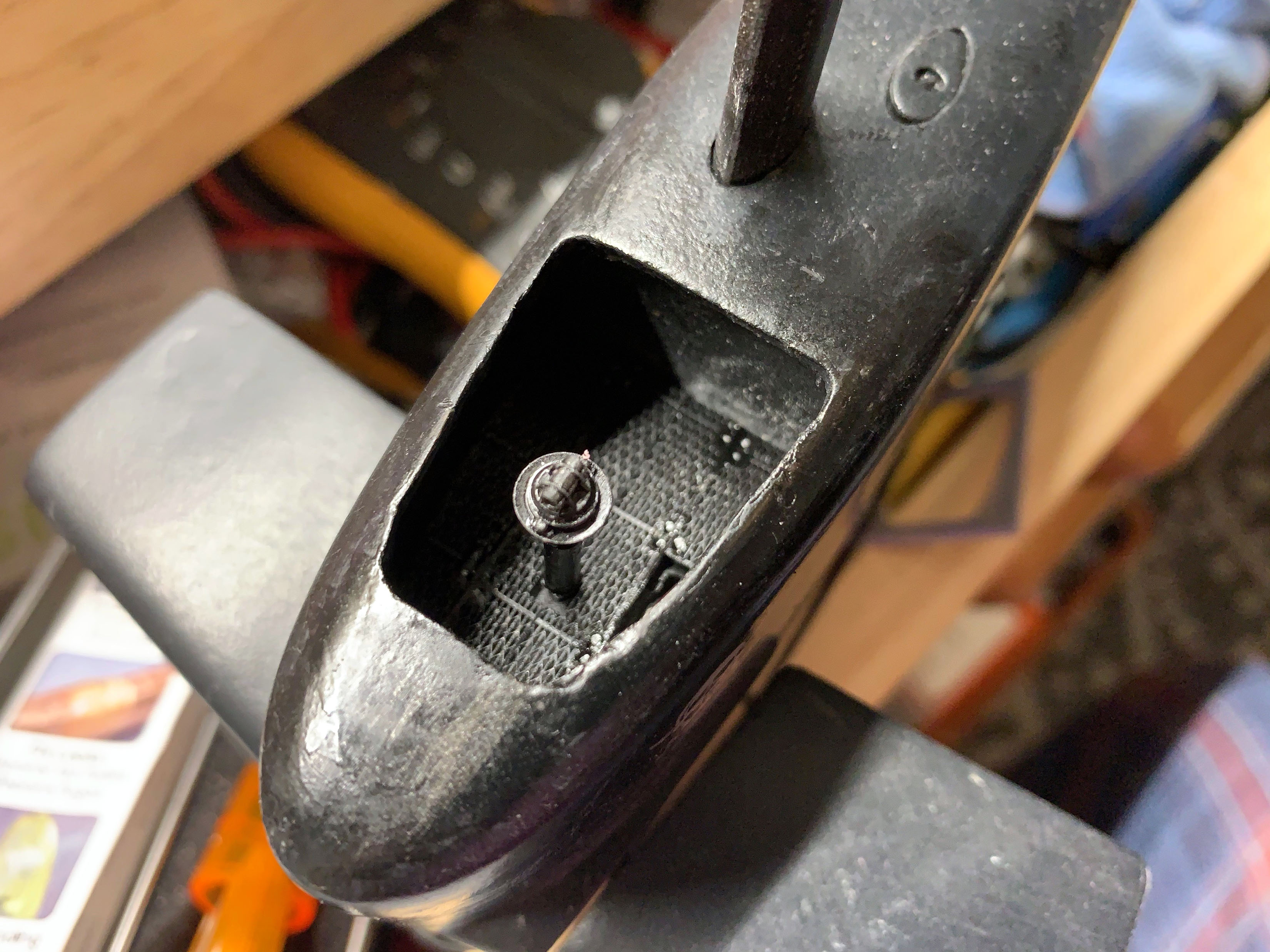 Now the wind shield and clean up the finish. I might have to lose the skull and cross bones depending how the tidying up the opening.
