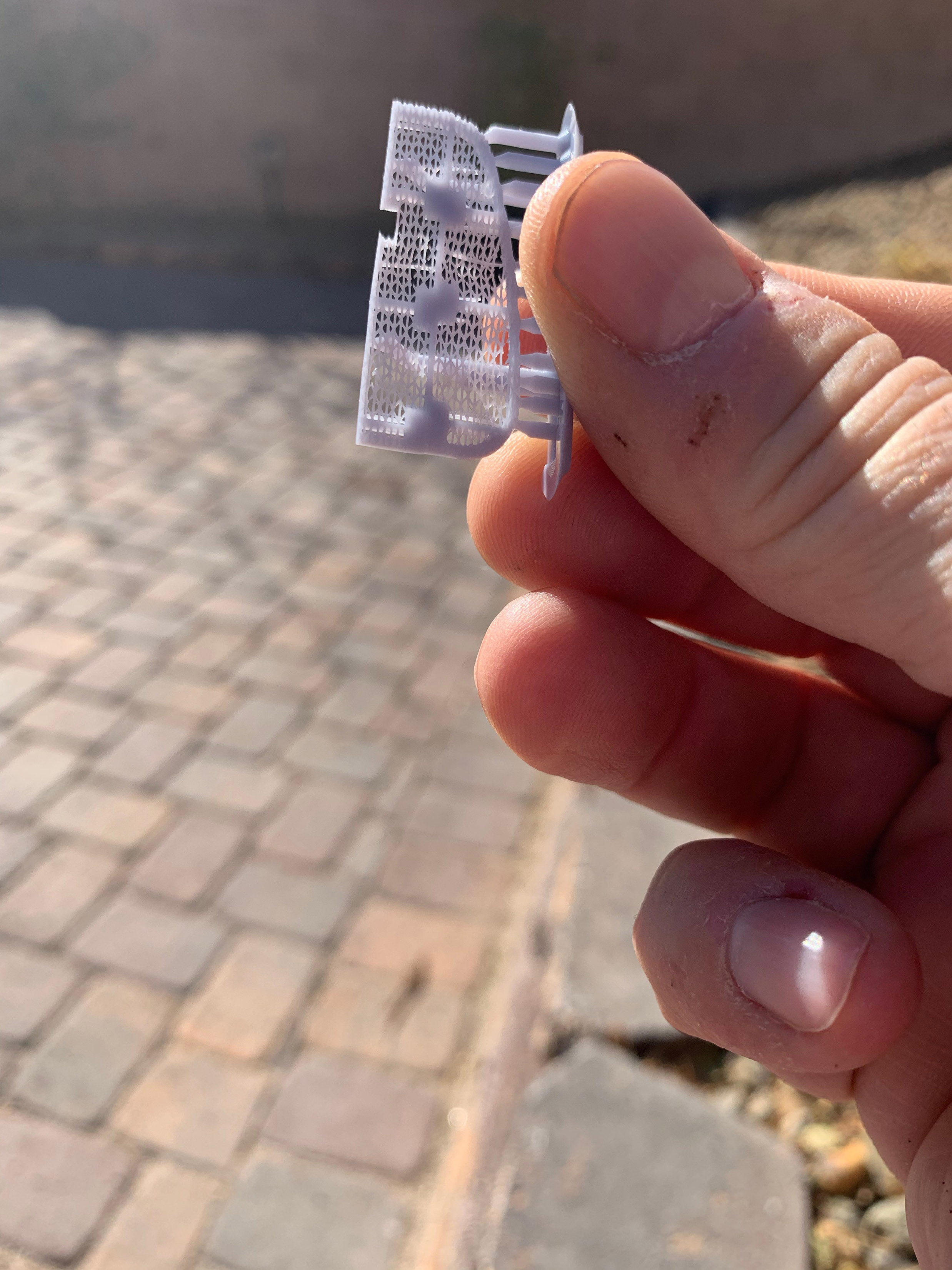 Half did not print at all and the other half sorta printed. It was too fine and portions tore. I will try again making the grating a little thicker. This could be a nice detail. Railings, I will add this in brass, I think.