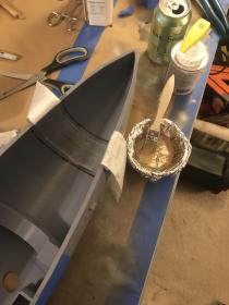 Welded the lower sections together and am now reinforcing with some glass cloth. Test fit for the wet batteries and sizing up a cylinder.
