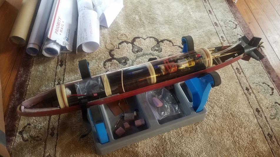 I will need to do a few mods to the Permit for fitment, including shortening the driveshaft and moving the shaft bulkhead further aft, redoing the steering linkages, and removing the current locating pin and figure out how to do location with the new unit. I also need to install the new snorkel, which will actually fit in the Permit Sail!!! Sadly I will retire my Rube Goldberg inspired home made pink snorkel.