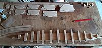 I'm kinda changing my mind on how I'll plank. I was going to plank two hull halves on their frames...then cut the frames off the strongback...then hollow out the frames. Then, I remembered how I planked my yawl boat. I put painter's tape on the frames. So, the planked hull would just pop-off the frames when done. I could do this and then match the hulls. I did this successfully in a 1/24 scale 7" yawl boat.