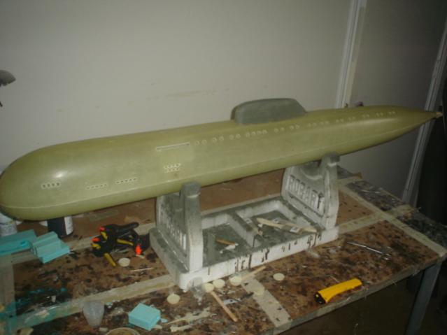 Here is the last boat molds I am making. Getting out of sub molds. Getting too old plus I have too much else going on. Little over 5 years I made molds for a 1/72 Alfa, 1/72 Charlie I, 1/72 Charlie II, 1/72 Victor III, 1/72 Golf II, 1/96 Delta III, 1/96 Delta IV, 1/72 688. I am tired. Anyway Charlie II is 57" long with a 5 1/2" beam. Tons of detail scribed into hull and sail plugs. My boats are labor intensive. Mix West epoxy and fiberglass powder and put 2 coats in hull and sail molds. Like a jell coat. Then I start laying up multiple layers of 4oz and 6oz cloth. Bullet proof surface on the hulls. Only going to make a handle of Charlie II kits. Already have a couple of pre sales. Keep your eyes peeled as I will be listing a 688 kit, a completed 688 and the 688 molds.
