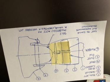 The shape barrows heavily from modern fighter airplanes. She is a static diver. the propeller is shrouded to produce higher thrush and vectored rudder.