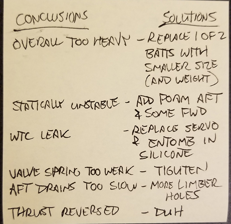 You know, that's a damn good idea. The evolution of the sub's guts left this WTC at the center of the bulkhead, with less and less inside it over time. Once I got the two Sub10 ESCs which are immersible, I shortened the WTC down to being only able to fit the one servo. But in all this redesigning, the "legacy" WTC had more to do with what it was mounted to and what was mounted to it rather than keeping stuff dry, which is a pretty silly reason to have a WTC. I should find a find a way to just seal, or "pot," the one servo. Might free up some critical space in the process. Thanks for the excellent suggestion!