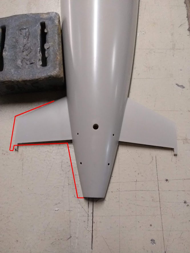 Investigating further, I marked lines on the bench and determined that the stern is almost 1/4" from where it should be. The red lines on this pic are where the hull sits naturally if the lead weight wasn't there.
