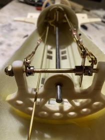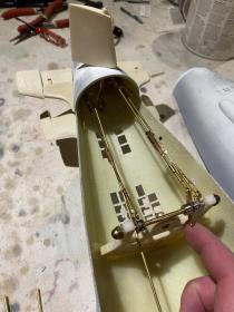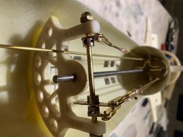 This photo shows the linkage for the rudder turning one way. And the the other. Notice the outer planes moving in opposite directions.