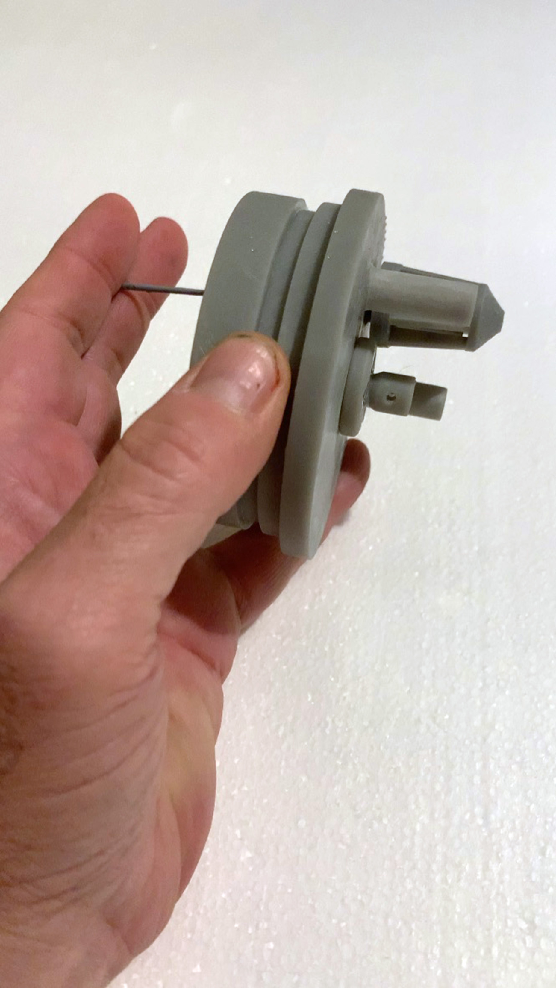With everything removed, There is a nipple in the center that a bearing rides on. In this prototype there are 3 holes that are more like cups in that it is sealed at the end. What is missing (and will be put in the next print) is the water intake for the piston.