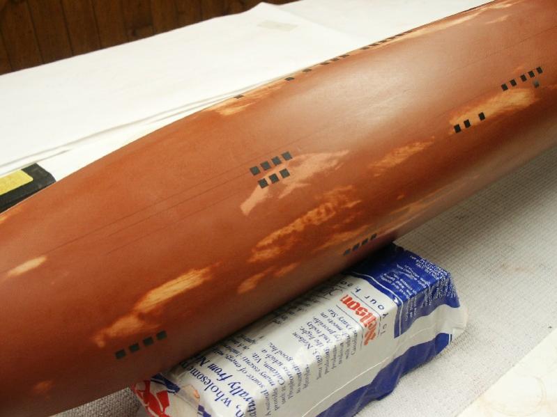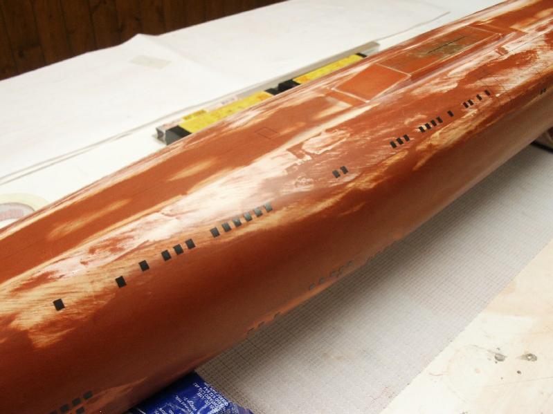 That's all the "big" holes in the upper side of the hull. I still have to do the ballast tank vents on the upper surface, but I'll proceed to mark the companion "soft case" vents on the lower side of the hull first. (I'm doing this because I want to leave the smallest masks for last as they have the least amount of "stick" keeping them in place.)