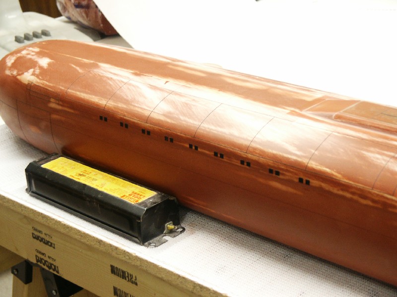 This weekend was largely consumed by marking drain/flood hole locations with small pieces of electrical tape. I first had to cut the tape down into little squares (or rectangles) of the appropriate size, which after a while really makes your eyes go crossed! Having cut out all the pieces though, I could get down to figuring out where they all belong on the hull.