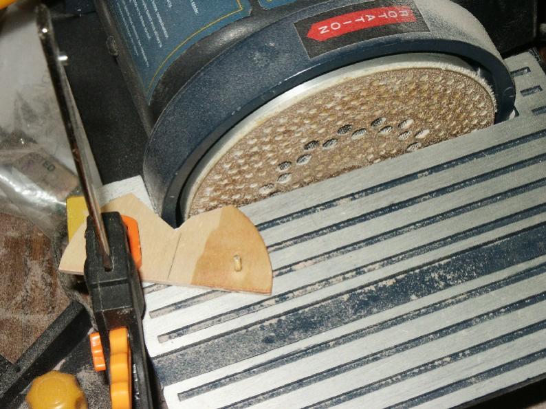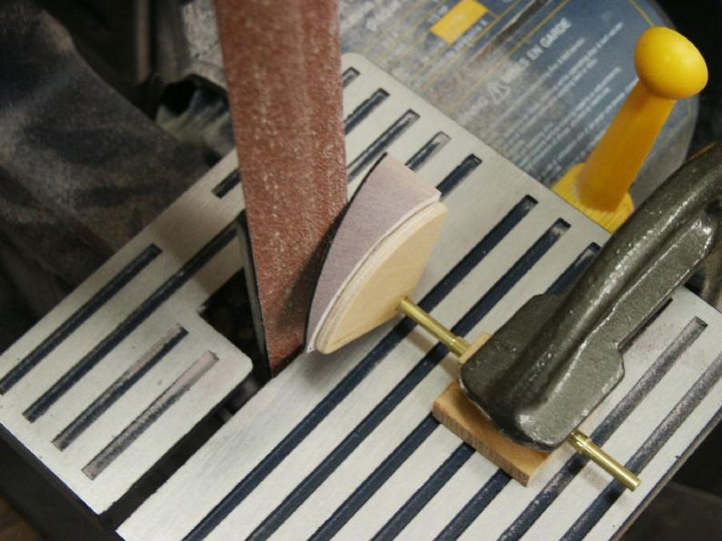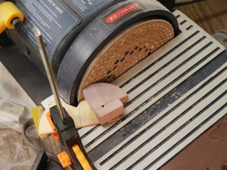 Next I trimmed the blade blanks to the correct radius. This was done with a simple jig on my 4" disk sander.