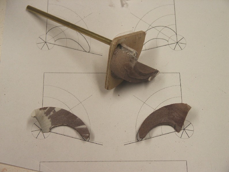 Following the same process as above, I again ground away the excess material to create a 1/32" thick helical "cork-screw" that is all ready to be carved to the shape of the blade.