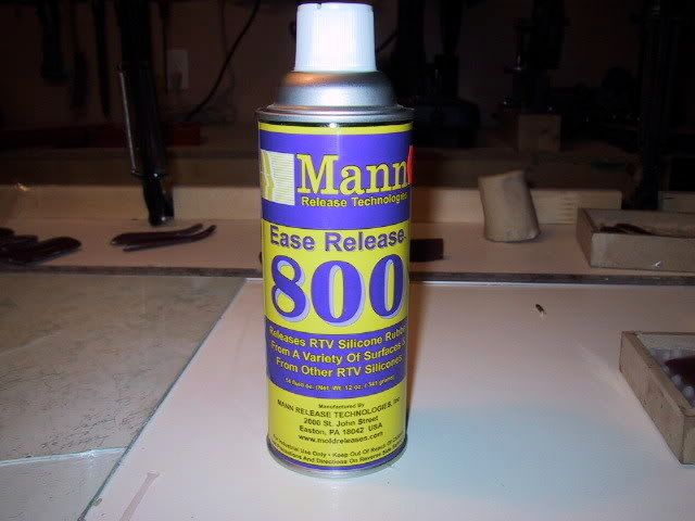 With the box now empty, the first half of the rubber mold is placed in. Then, I sprayed release agent over the entire rubber mold. I really like this spray on release agent for the convenience alone. A can of this cost me $10.00