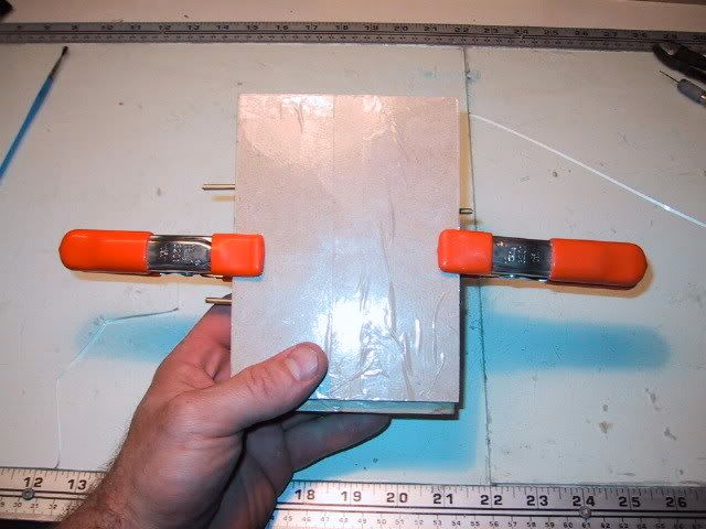 Initially, I clamped the lids on. I later discovered that I could get more mold boxes into the pot if I taped the lids on, and taped the boxes together. MAKE SURE your mold box is completely sealed when the lid is on. If there are small crack openings, seal them up with clay, and tape over. Do whatever it takes to makes sure that box is not going to leak. As mentioned, once it starts....you're hooped. The box is now ready for the first half of the mold. Pour the Smooth Sil 920 into the mold box (being careful to pour slow enough to allow the material to actually get into the opening. If you pour too fast, the RTV will get all over the place...except in the opening.....yep...learned that one too). Once the RTV is poured, place the box into the pressure pot. I set the pressure on my pot to 75 psi and let it set for 8 hours. Ensure that your pot lid is tightly clamped so that the pressure doesn't go down. The pressure pot ensures no bubbles in your final mold. The pot works very well. The largest mold box I could get in the pot is very close to 9" x 9" x 2 1/2 ".