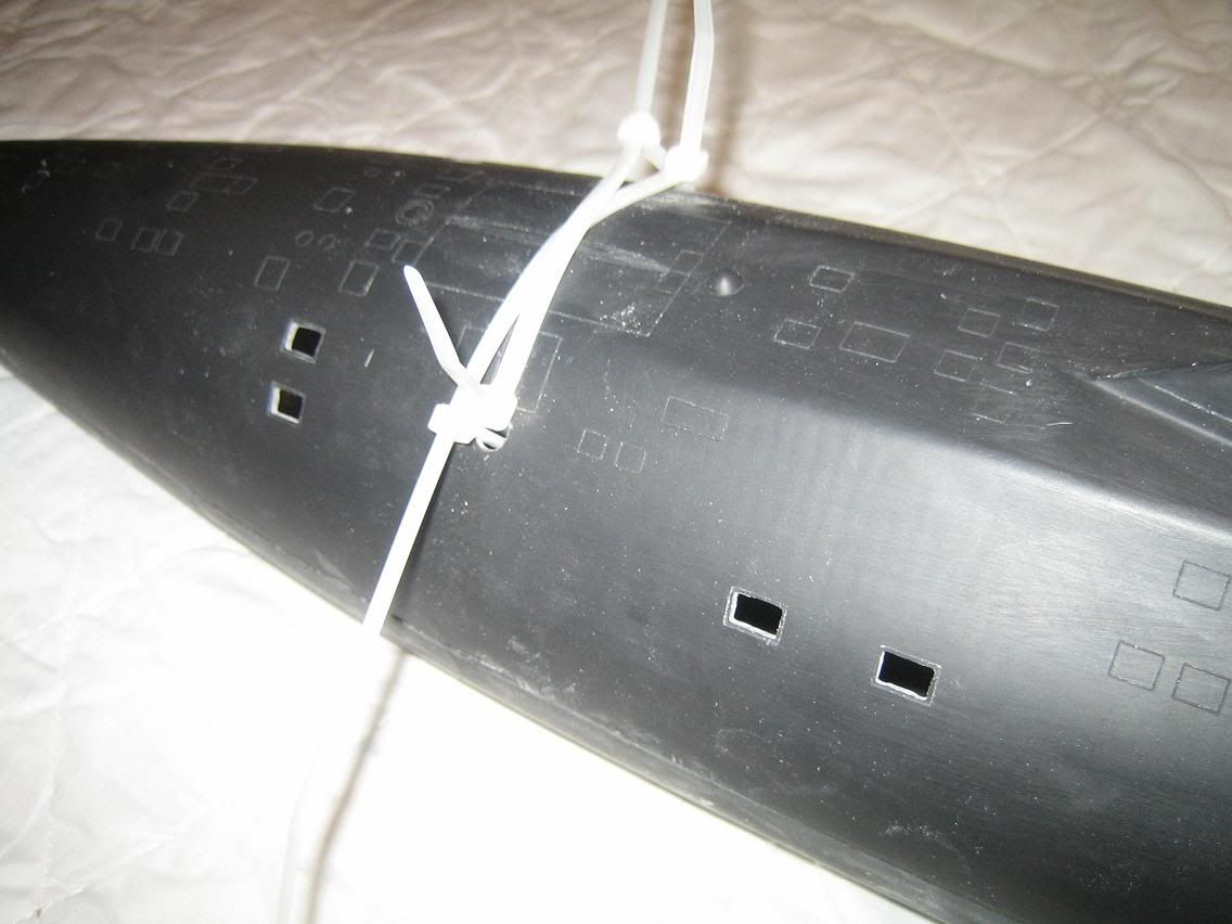 Pic # 28 shows the gap I'm talking about and # 29 the seam towards the bow which upper hull sits just fine over the lower one.