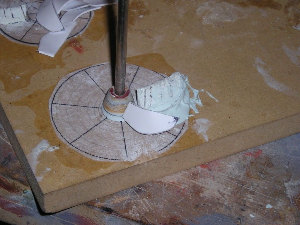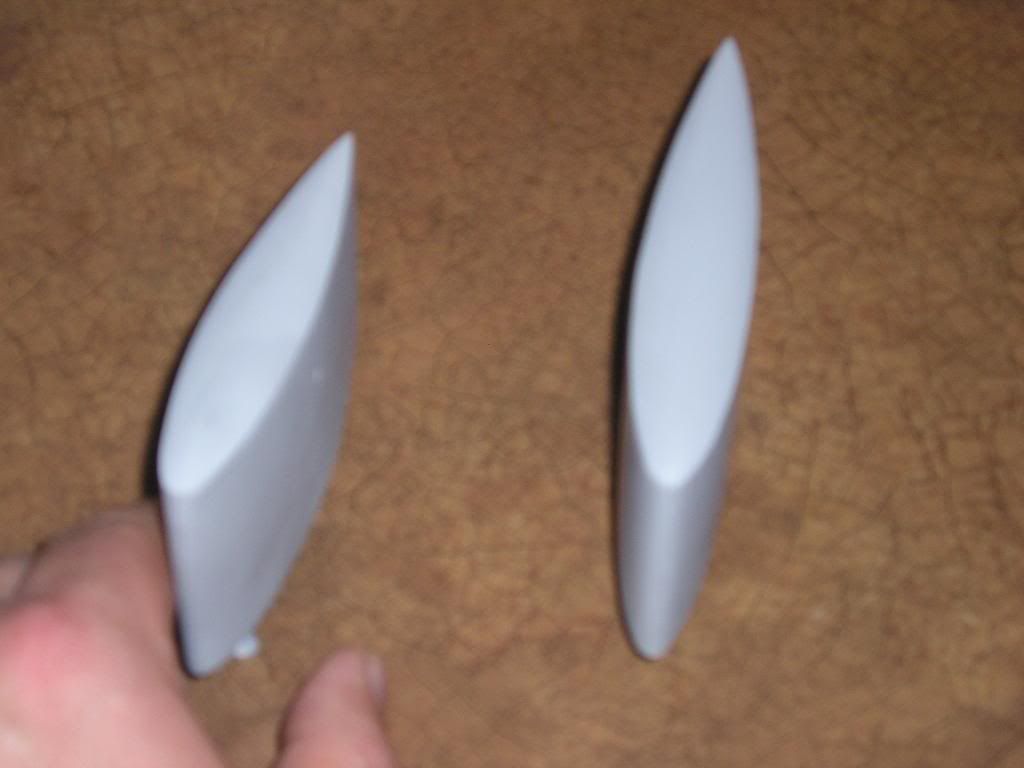 We’re still rollin’ on the screws. Like I said last time I am going to be working on blade profiling. I would define profiling by what you would see when looking directly at the propeller blade from the side of the propeller. What I want you to see is basically a marine version of the Clarke-Y-foil…the basic design of an airplane wing but with the thickest part of the blade brought back from the front tip a little bit. Also, as per some marine prop designs I am adding some cup to the high pressure side of the blade in an attempt to give these props some nice bite when starting from a dead stop.