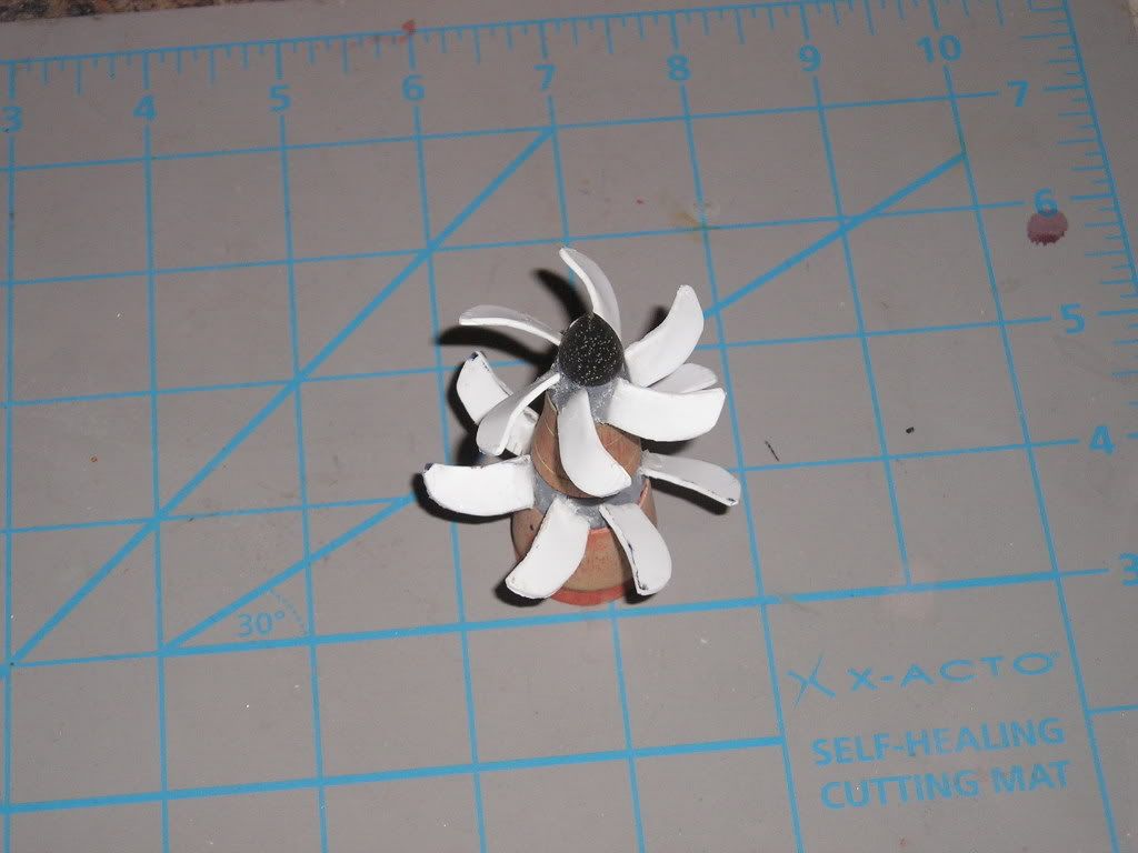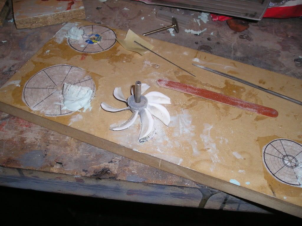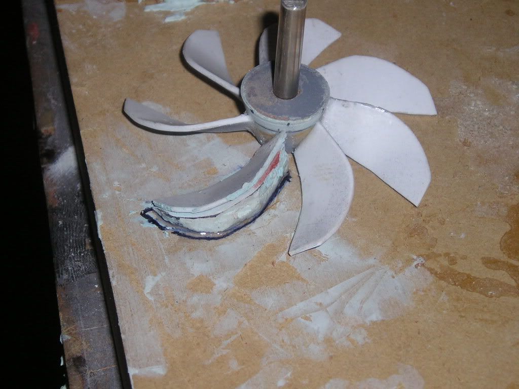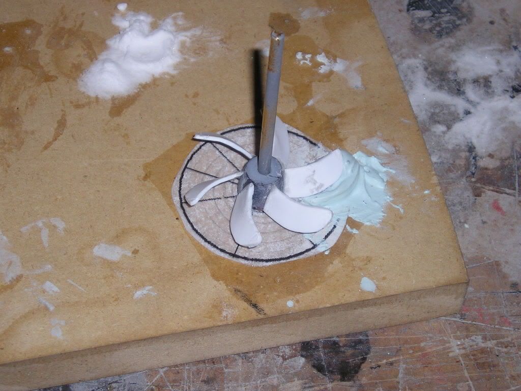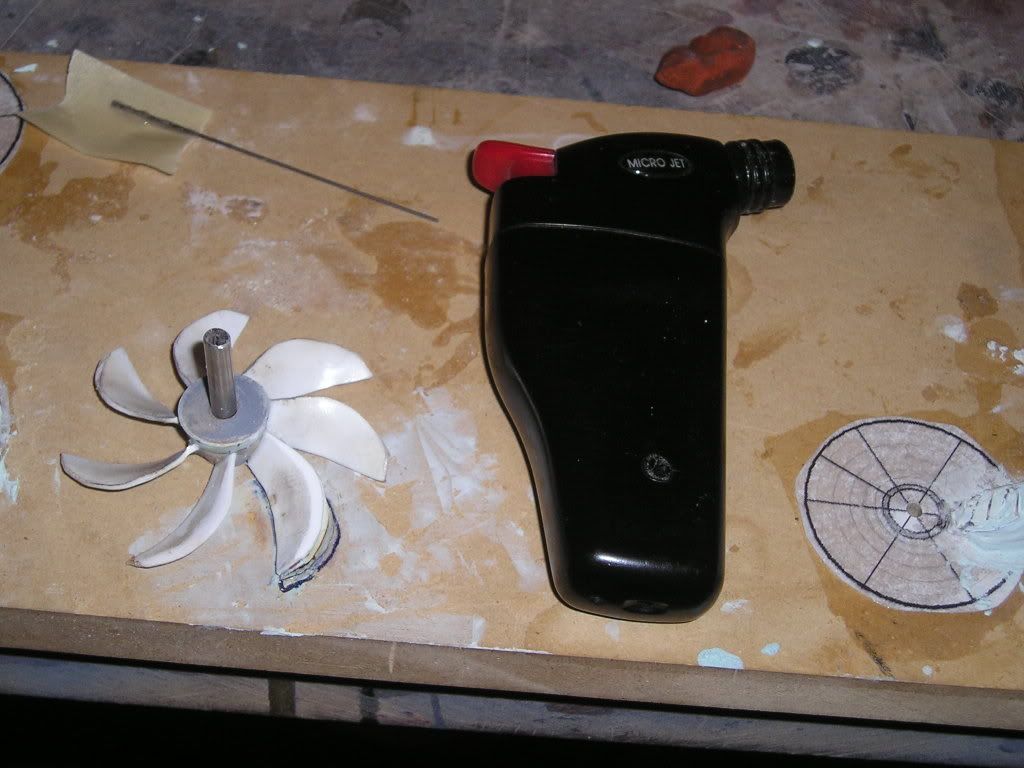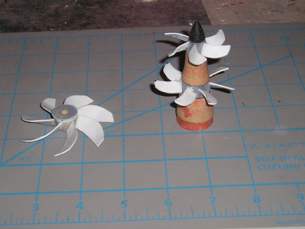 I think the major drawback in using styrene in this application is the weakness of the joints connecting the blades to their respective hubs. But whatever though, I have been making cradles and supports that back up the blades when I work them