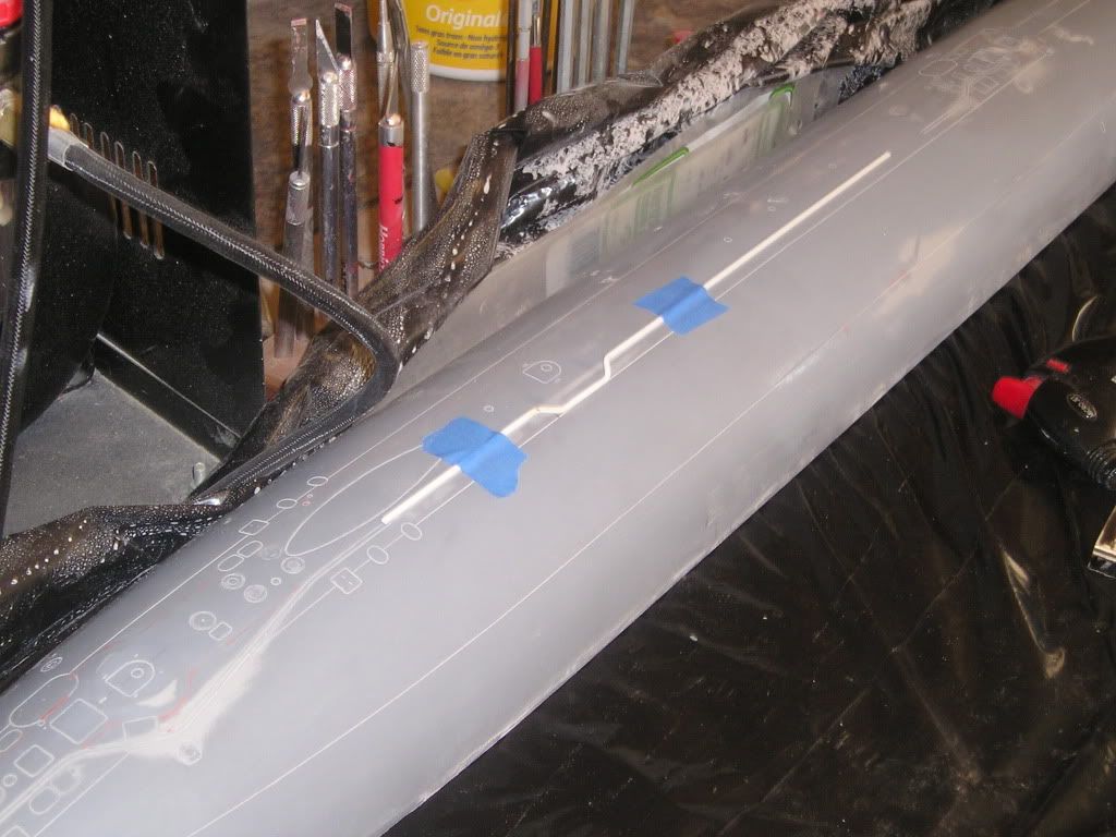 My mould was waxed and had a nice coat of PVA applied with my touch up gun. I tried experimenting here because I intend this first hull to go to my sister who is in turn painting the box art for my kit packaging. She doesn’t have spray equipment or any of that kind of stuff, so I began her hull by spraying my Ful-Fill easy sand primer into the mould first before lamination. All she will have to do to paint is give the hull a very light wet sanding with 1000 grit. This ended up being really cool because it really made all of the details stand out strikingly and gave me a good chance to inspect my final work.