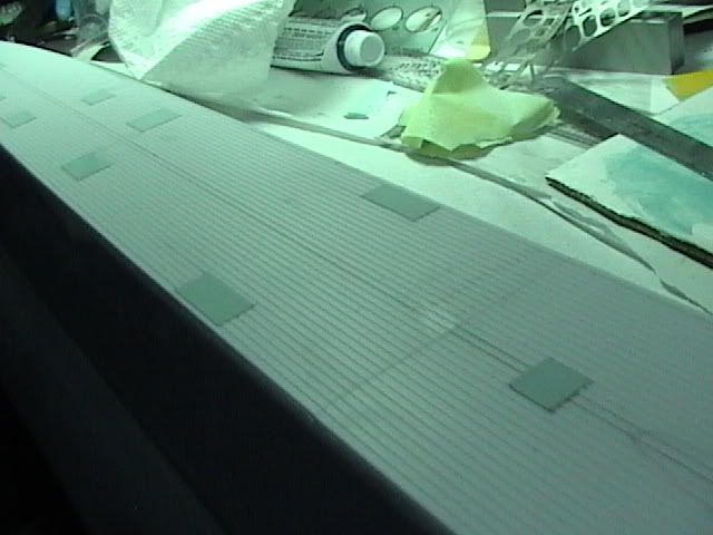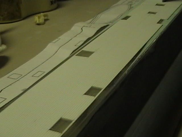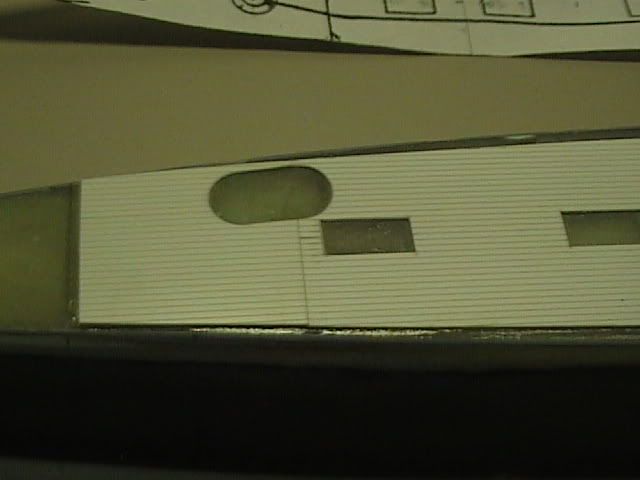 With the deck blocked down to the height needed so the Plastruct preformed plastic sheet could be CA on the deck, it was a simple matter of re establishing the Datum line of the model for center placement of the material. I used Thick CA for this job to give me time for proper placement & to lock it down tight!