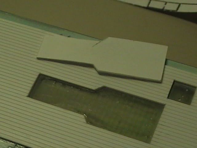 So I removed the deck from the model and decided to try another way that hit me one night, this time I would remove all the hatches and lockers from the deck before gluing her down to the model! When doing this I had noticed that my measuring was off from the plans and photos, but I caught this before any cutting was done.