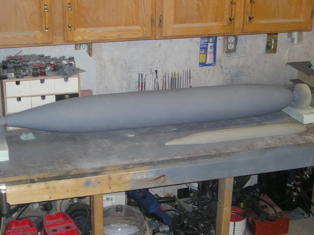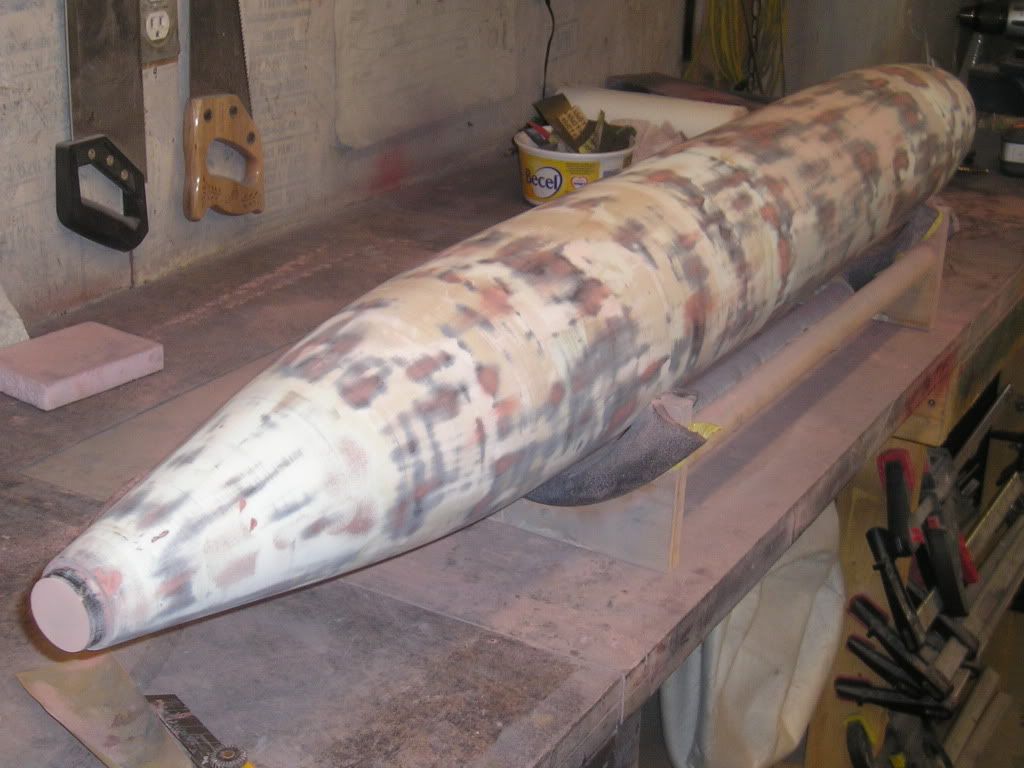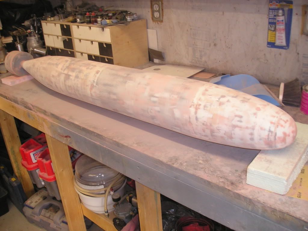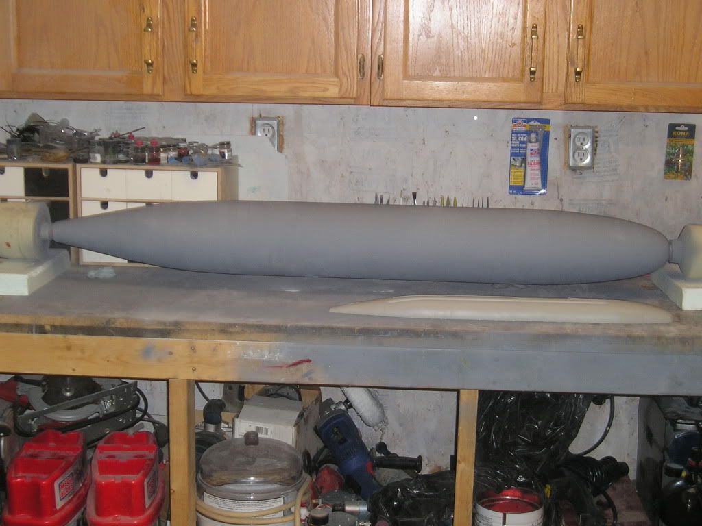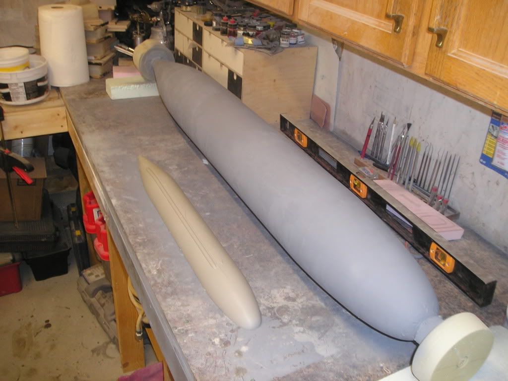 This model will be almost 60 1/8" long by 6 23/32" at it's widest (exterior). I will determine the optimum wall thickness once the hull mould is completed as I think there will be a little experimentation to get it right. I am predicting in the neigbourhood of 3/32". I don't have the prints here in front of me, but I would roughly guestimate the parrallel midsection to be around 40" long..plenty of room for a fat, long WTC and whatever else you can concoct to go in there. Bear in mind that I will attempt functioning retracting dive planes and will be continuing work on rotating torpedo shutters, so these items and subsequent machinery will take up some space in the bow.