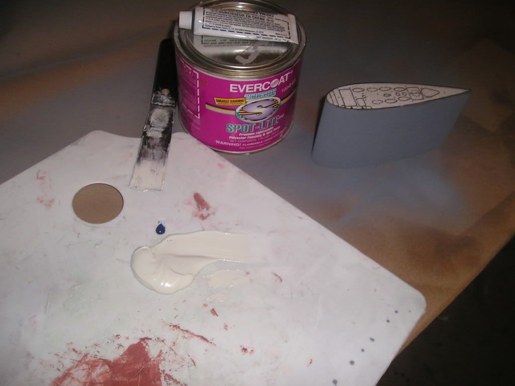 Last night I sanded down the primer coat using a block sander. This gave me depth perception for eying all the dings, grooves and imperfections (low spots) I have on the surface because of its darker color in contract to the lighter filler underneath it. Later, when finding the finer imperfections I will spray cheap black spray paint on top of the grey primer...more on this later though.