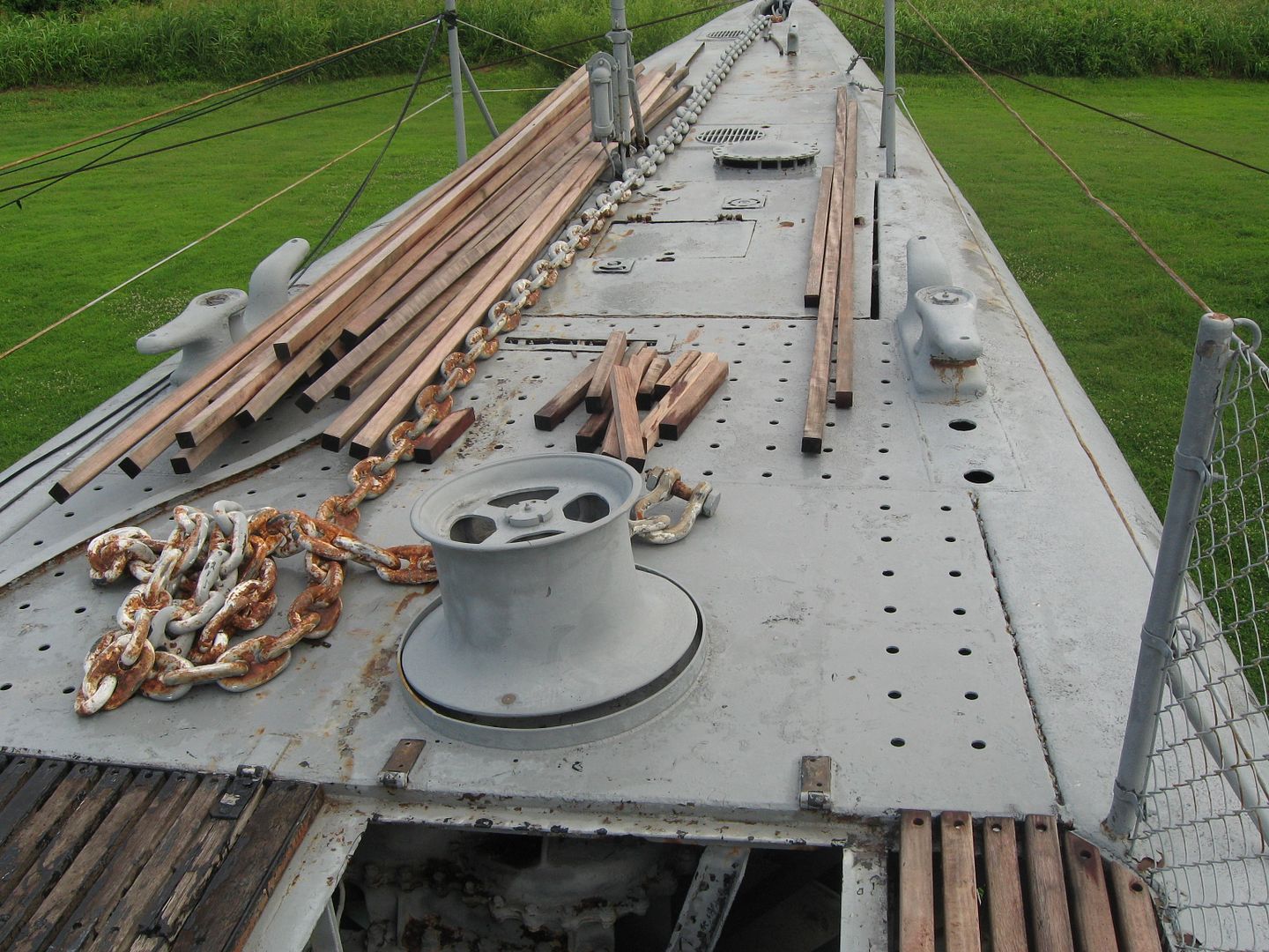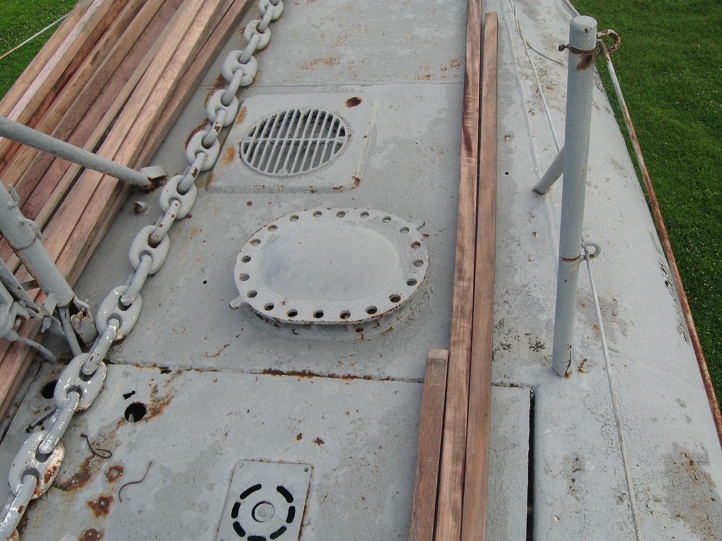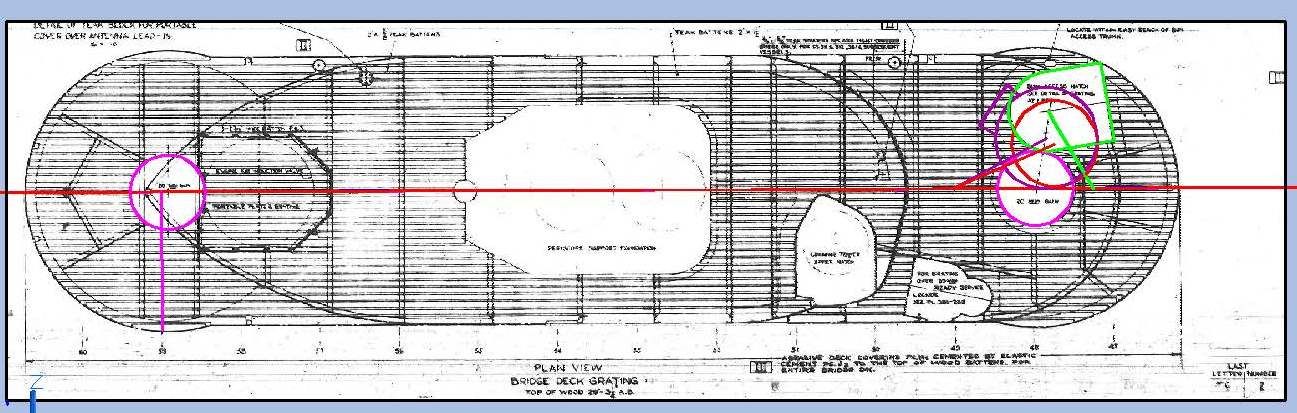 “Prior to 1952 the messenger rescue bouy was a cylinder held vertically in a well on the deck edge aft and in the superstructure forward beside the escape trunk (port on EB subs) ... The forward one would have been flush with the deck and the aft one slightly above the deck because the superstructure standoff aft is much less above the pressure hull. But these were NEVER carried on a war patrol!!! A blank round metal plate would have been welded over the empty sockets in wartime. You didn't want them blown loose by a depth charge and float to the surface to give away your position.. since they were attached to your forward and after torpedo room hatches with a steel cable to allow the McCann rescue bell to follow it down to the boat!!! There are plenty of photos to document this for model builders. The rescue bouys we all have today were installed in 1953 and originally were painted yellow. They were changed to orange in the mid 60s.â€
