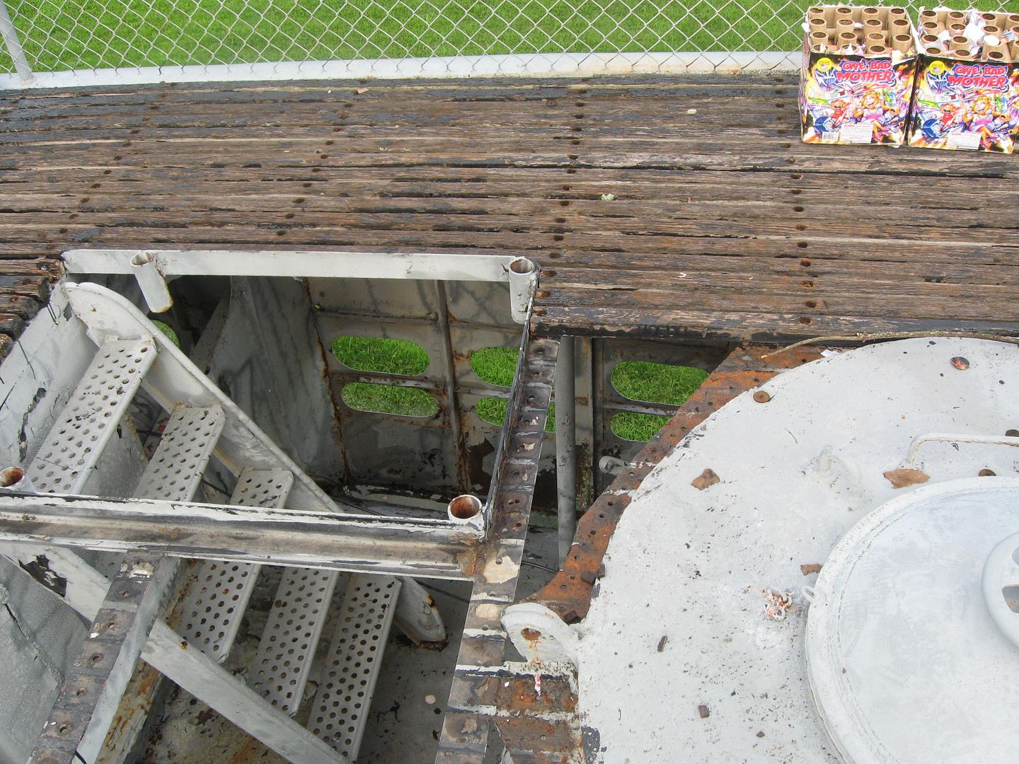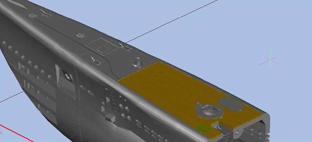 I started with the oval buoy which had to be filled in, which was more difficult than cutting it, due to the fact that the deck isn’t flat.