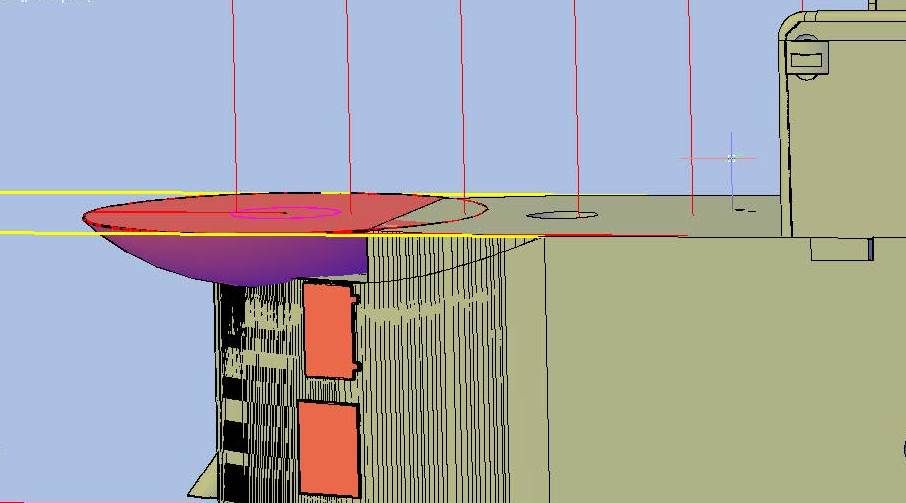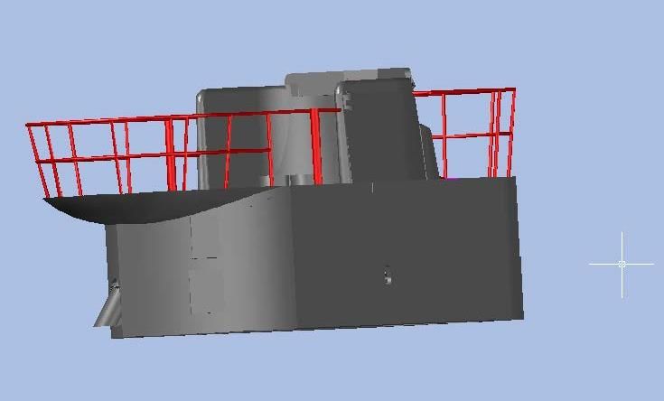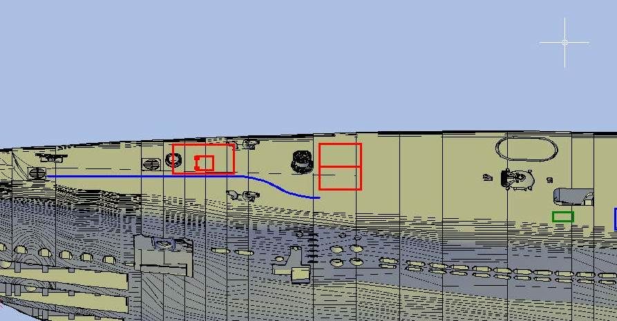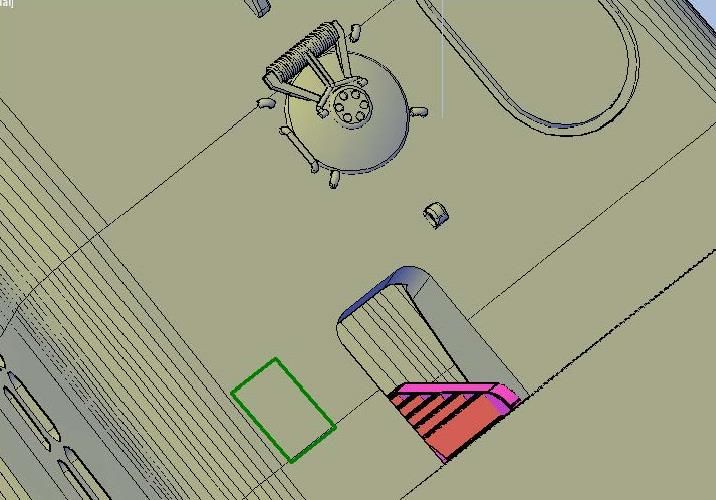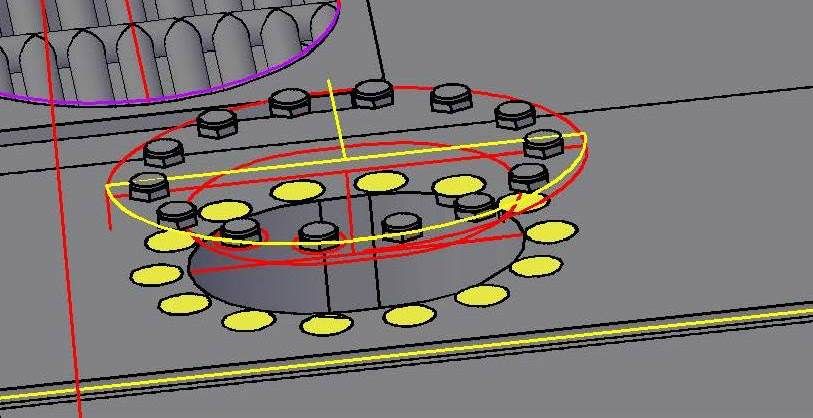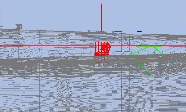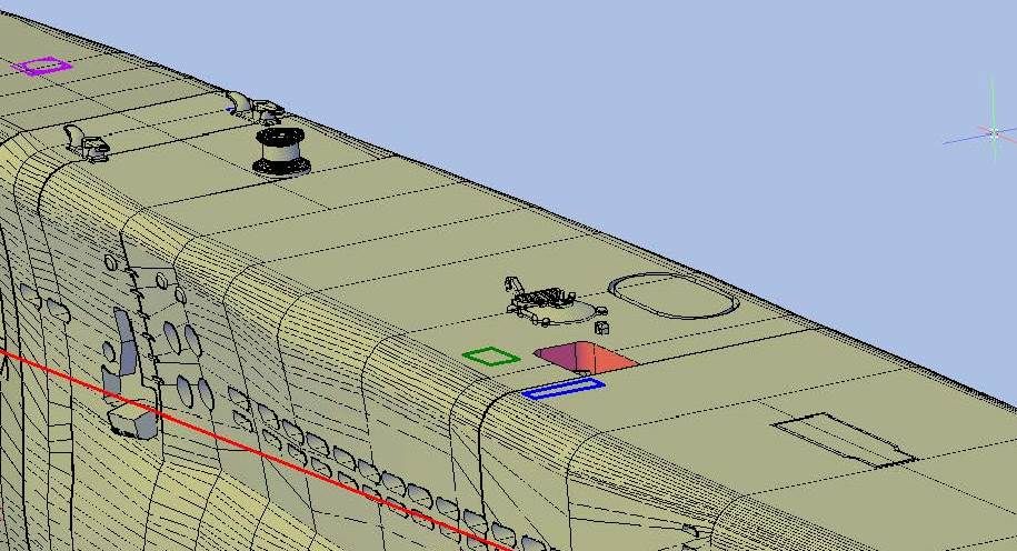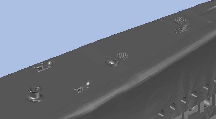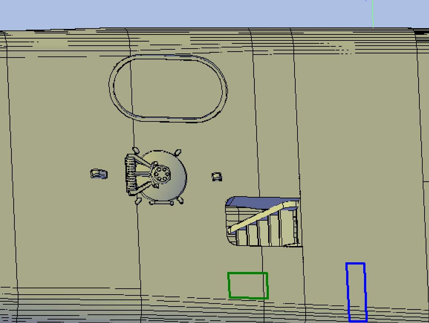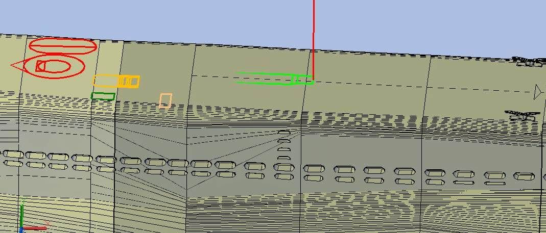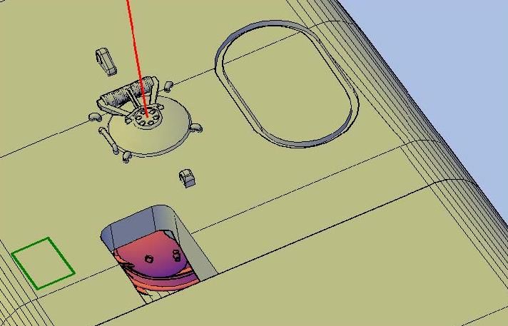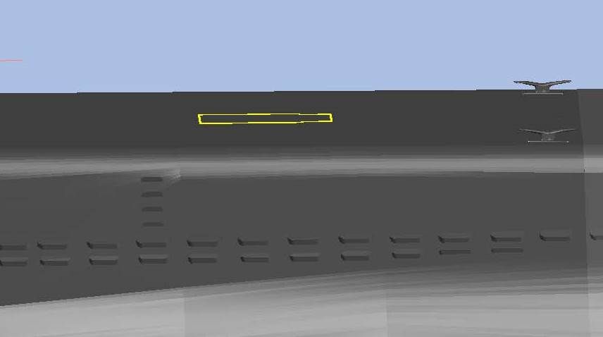 For the new (old) round buoy, since Paul says that they wouldn’t have been on the ship during the war, and that instead “a blank round metal plate would have been welded over the empty socketsâ€, I simply moved the circle up 0.010†and extrude it into the deck.