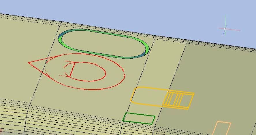 To fill it I slightly enlarged the green rectangle and extruded it around the oval.