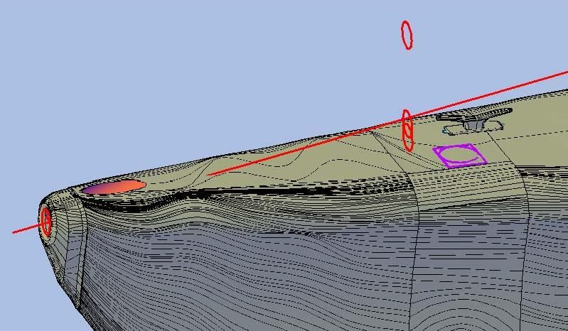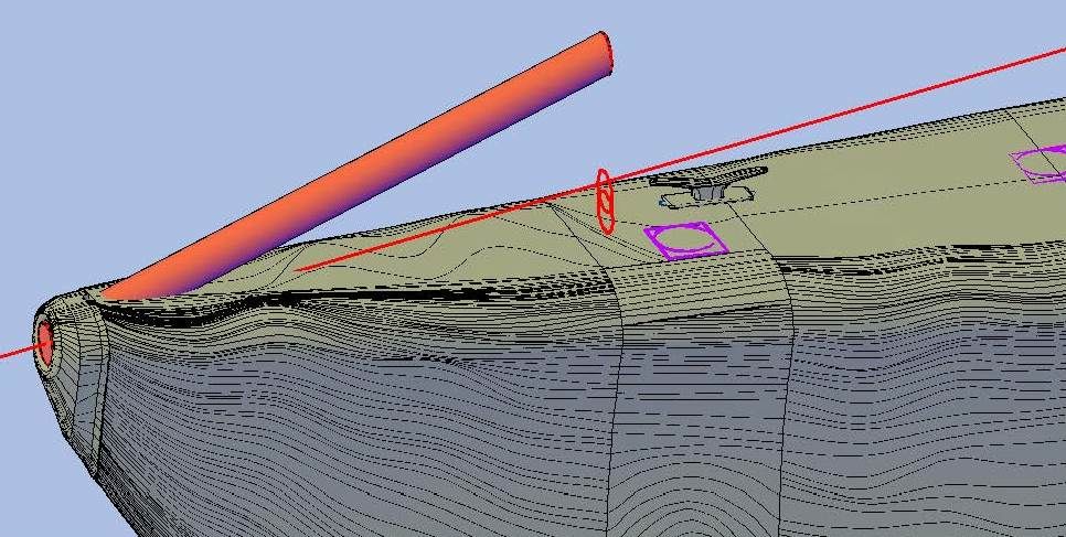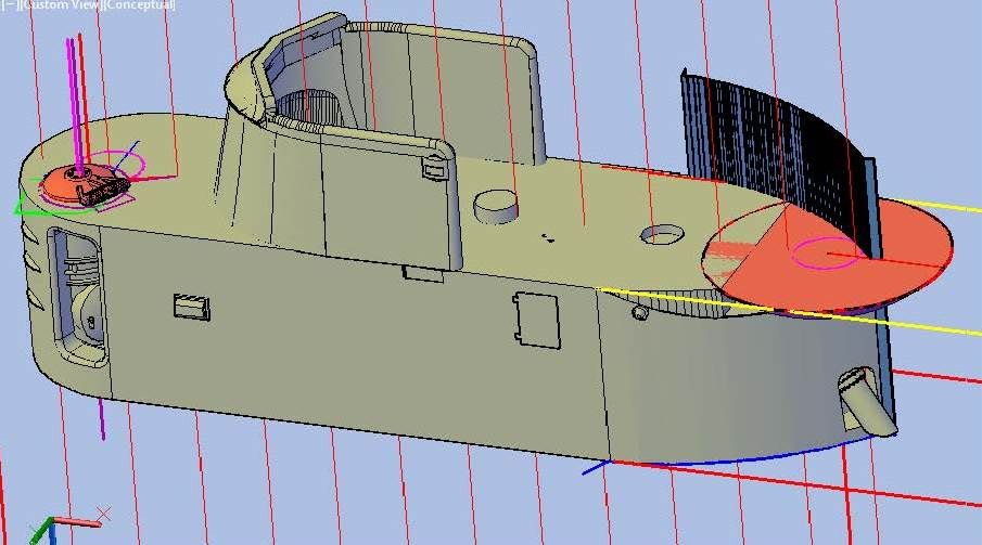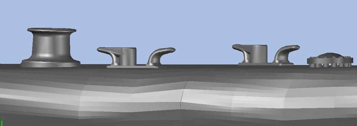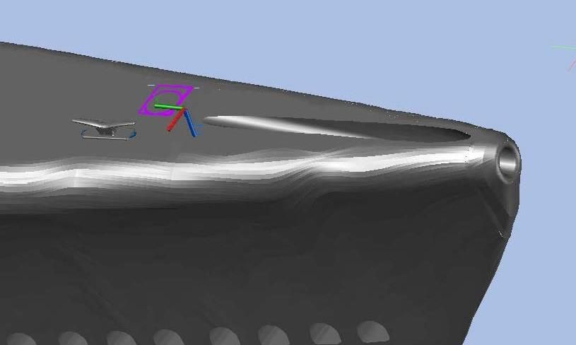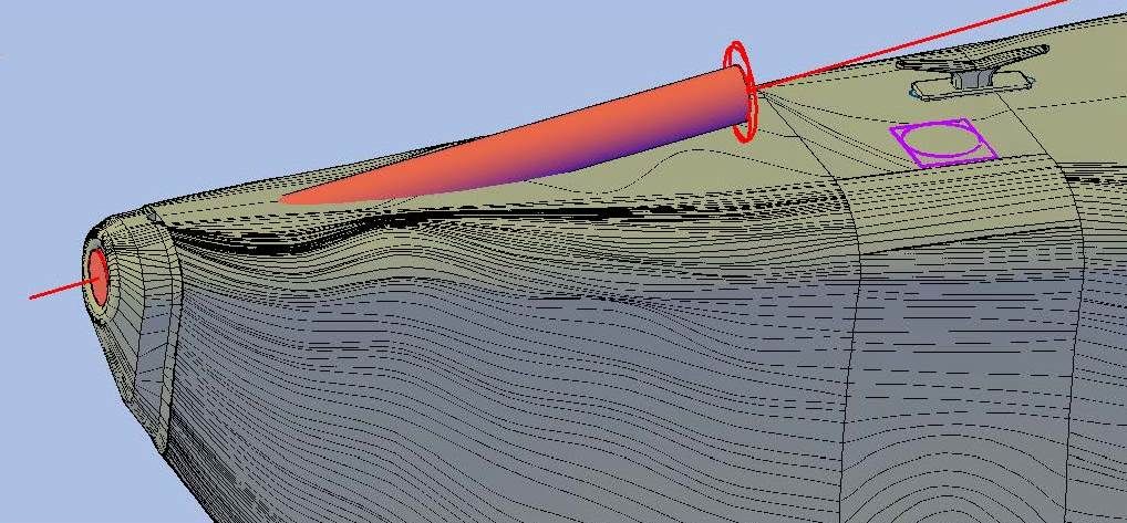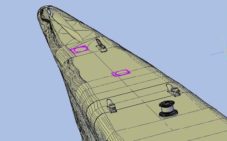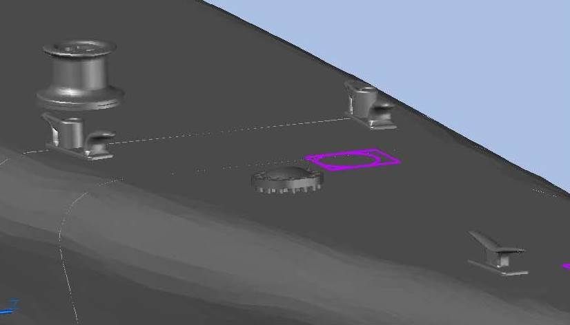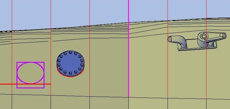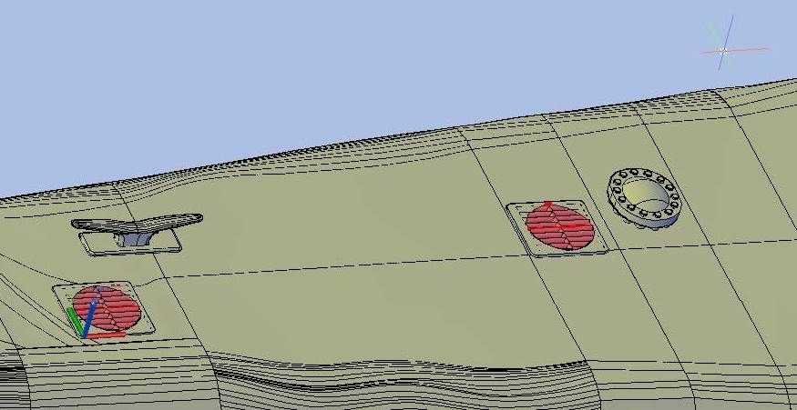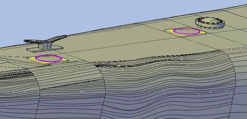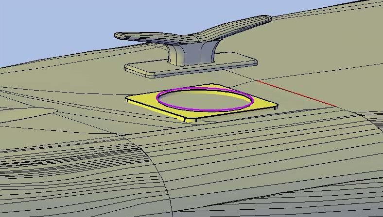 I then joined it to the deck. In the image below you can see the difficulty of cutting an object on a curved surface, as you can still see the outline of the oval buoy in Conceptual Visual style. This is because the deck surface and the surface of the extruded polylines wasn’t exactly the same, even though I traced the deck points to make the polylines.